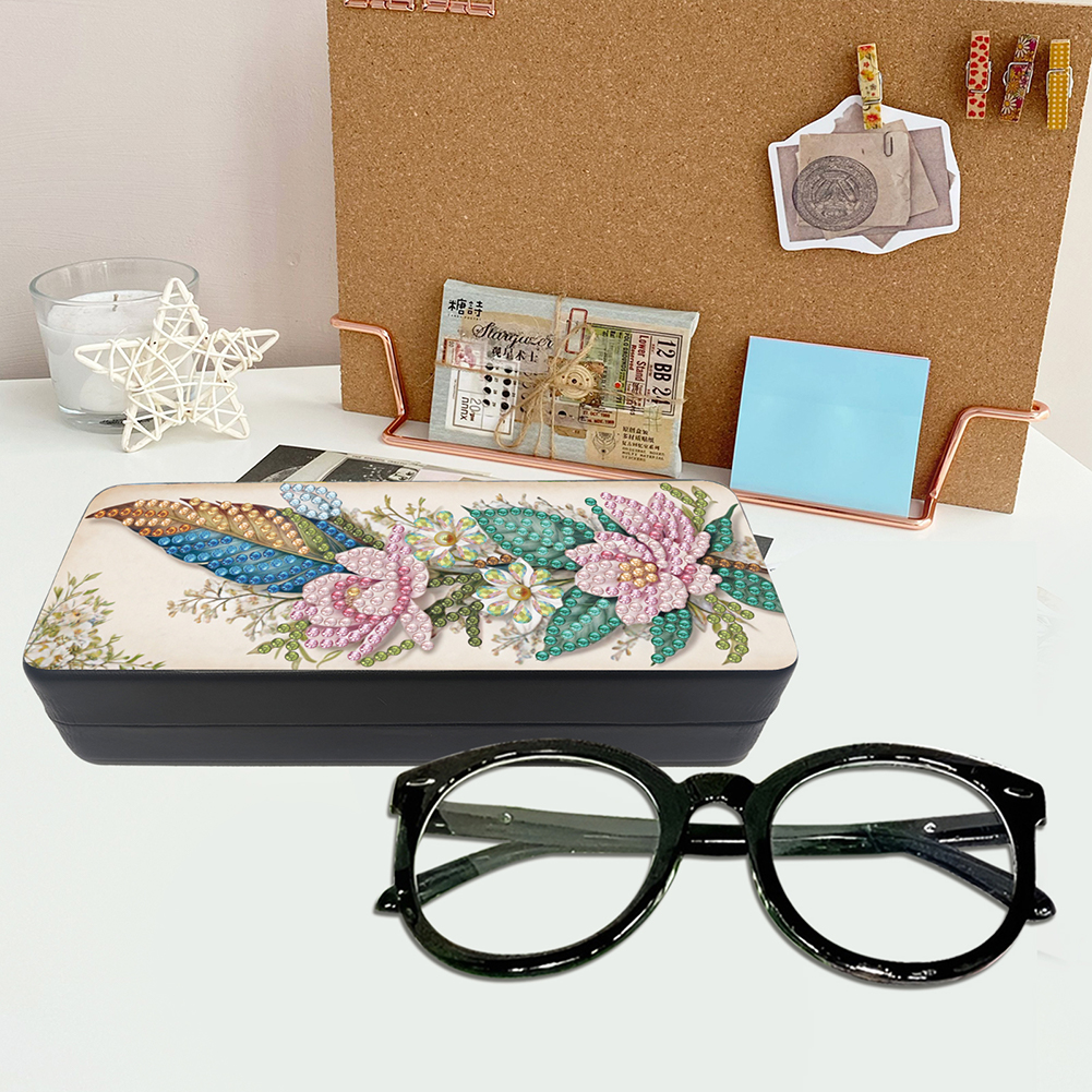 2Pcs 5D DIY Feather Diamond Painting Glasses Case Kit Diamond Art Glasses Case