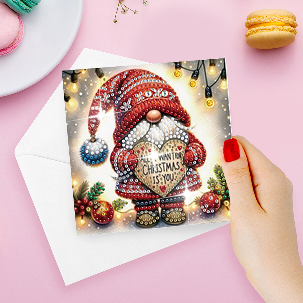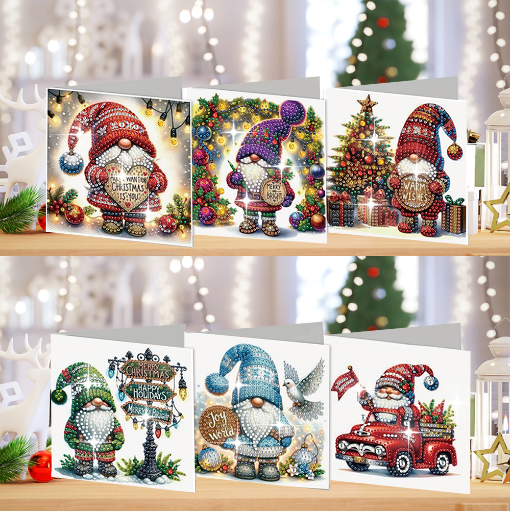 6Pcs Christmas Goblin Handmade Diamond Painting Greeting Card for Adults