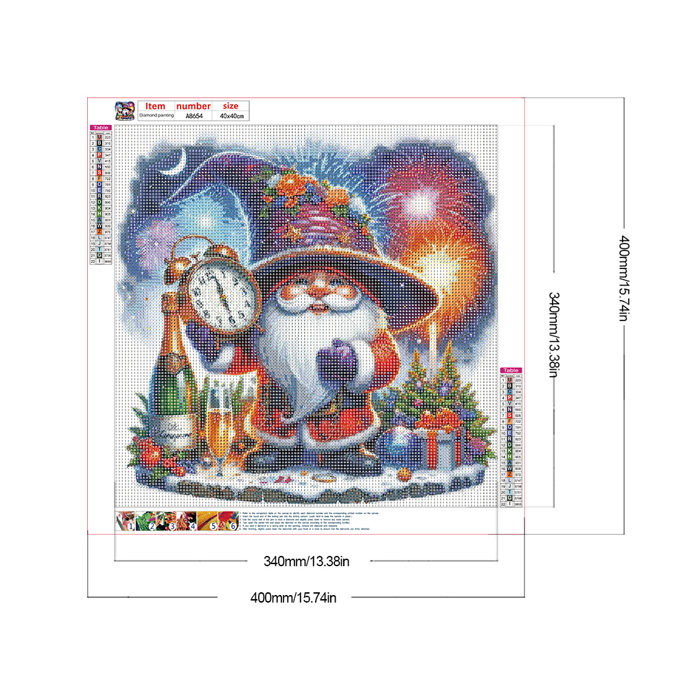 Diamond Painting - Full Round Drill - Gnome Clocks New Year(Canvas|40*40cm)