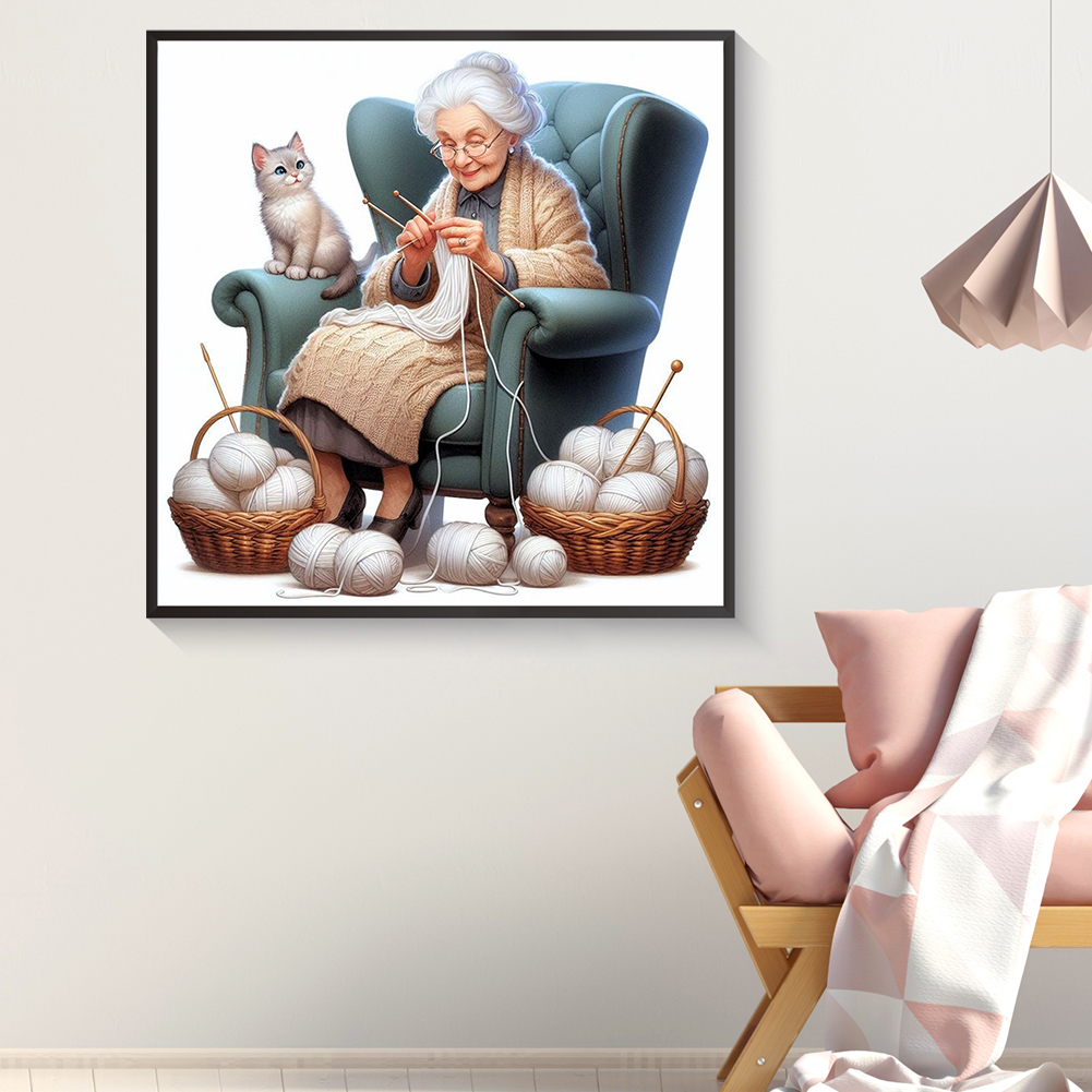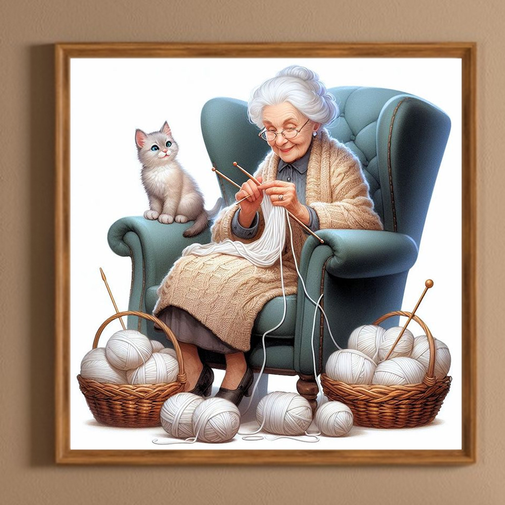 Diamond Painting - Full Round Drill - Knitting Grandma(Canvas|40*40cm)