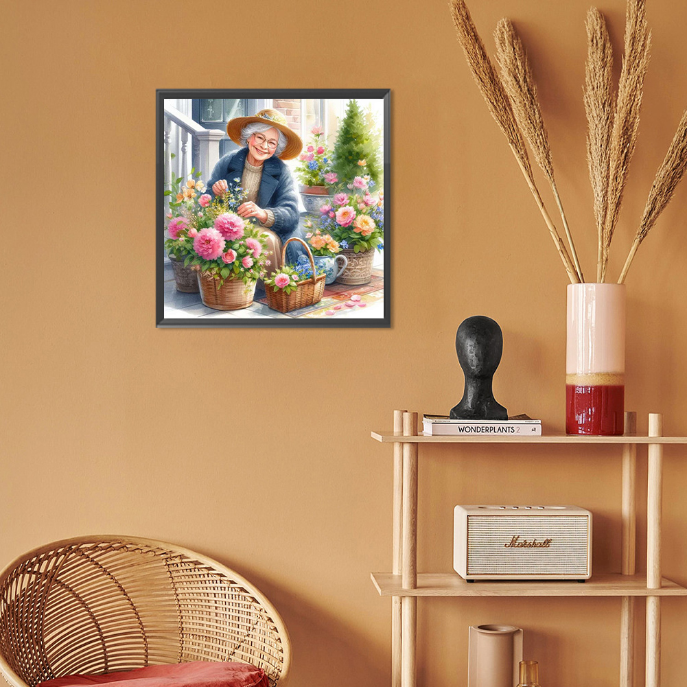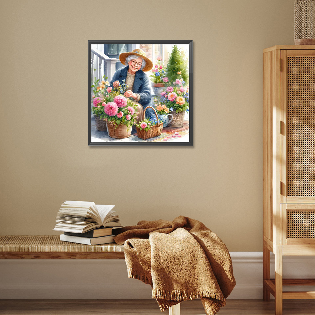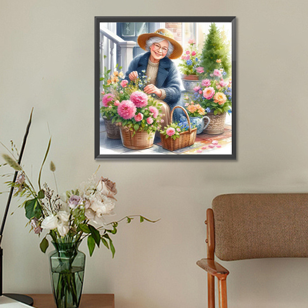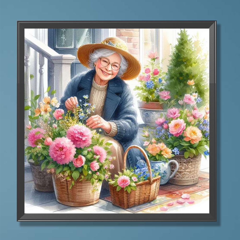 Diamond Painting - Full Round Drill - Garden Old Lady(Canvas|30*30cm)
