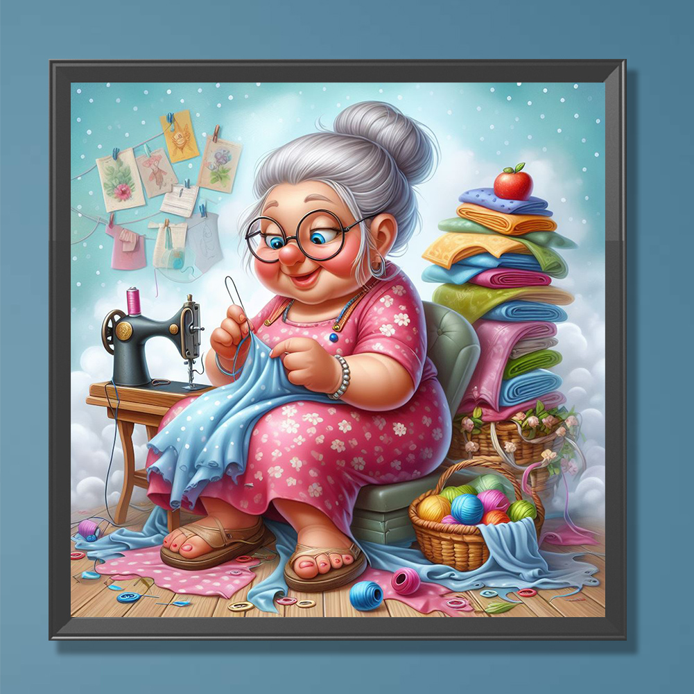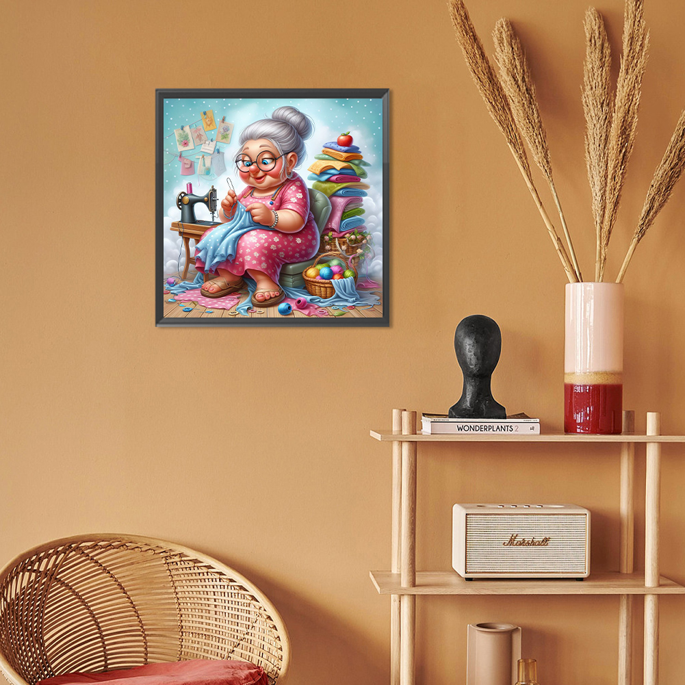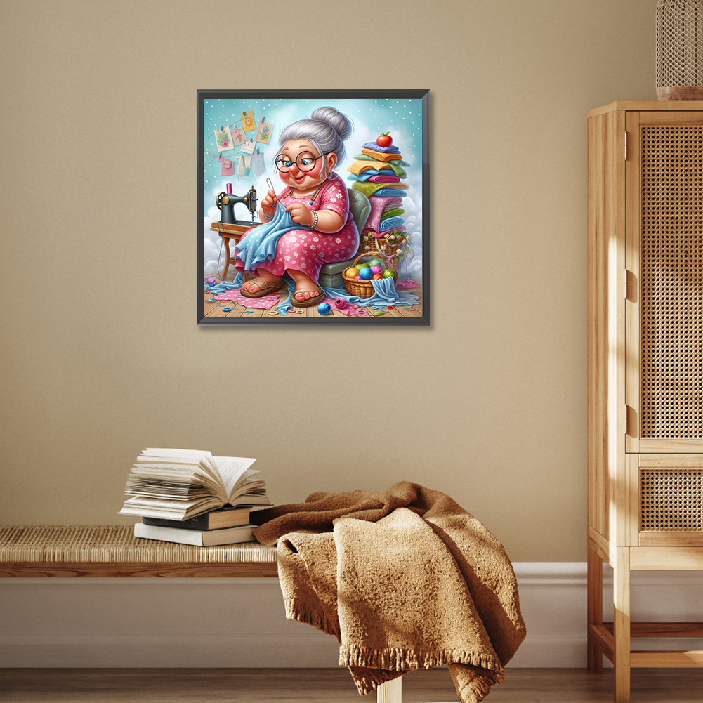 Diamond Painting - Full Round Drill - Old Lady Sewing(Canvas|30*30cm)