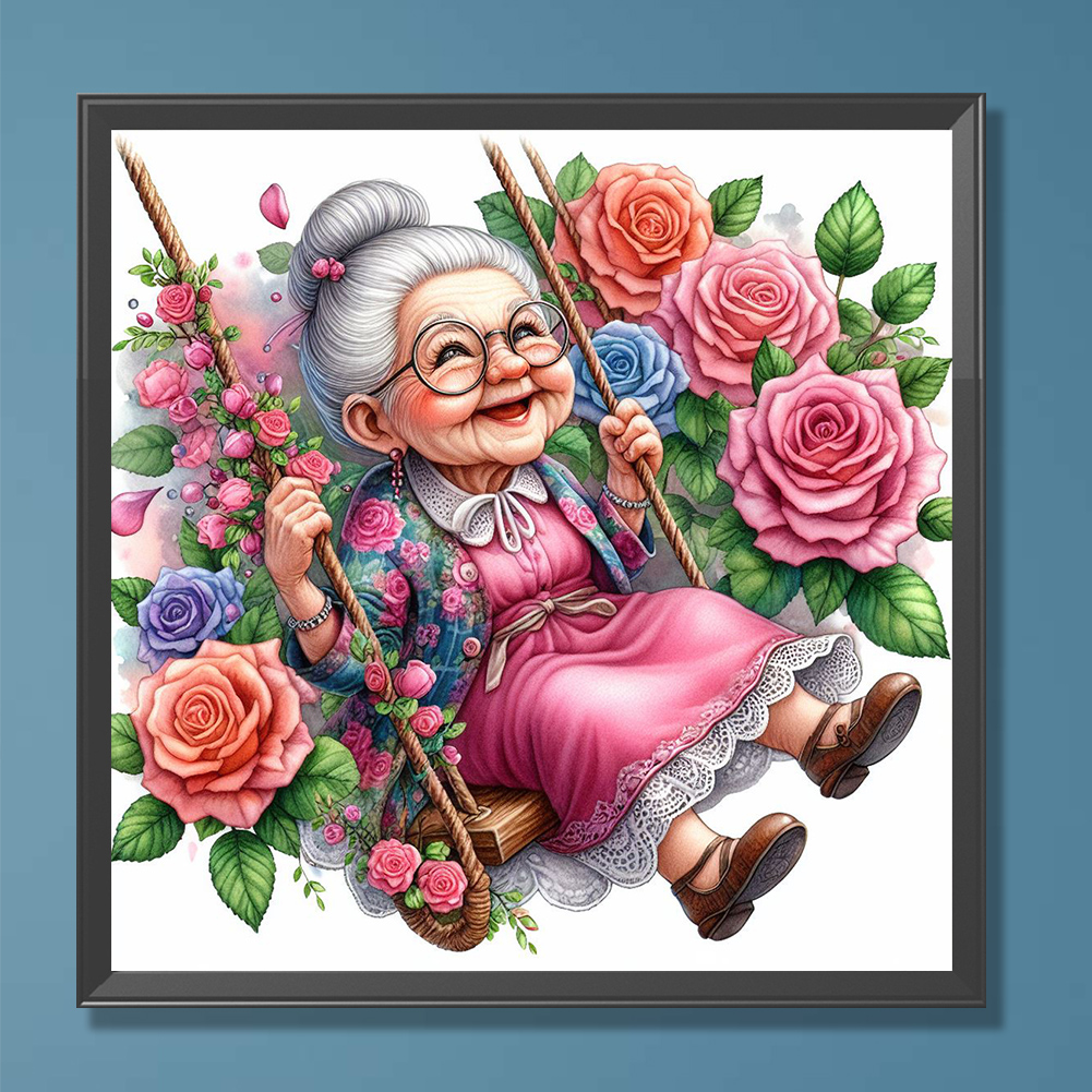 Diamond Painting - Full Round Drill - Swing Old Lady(Canvas|30*30cm)