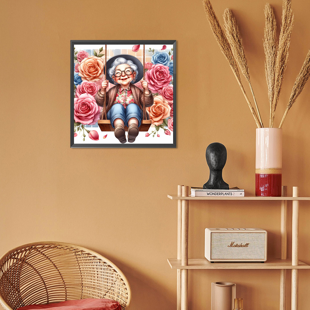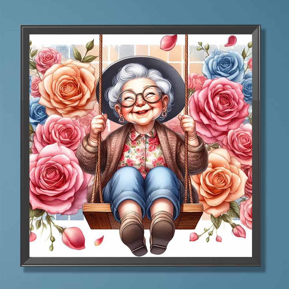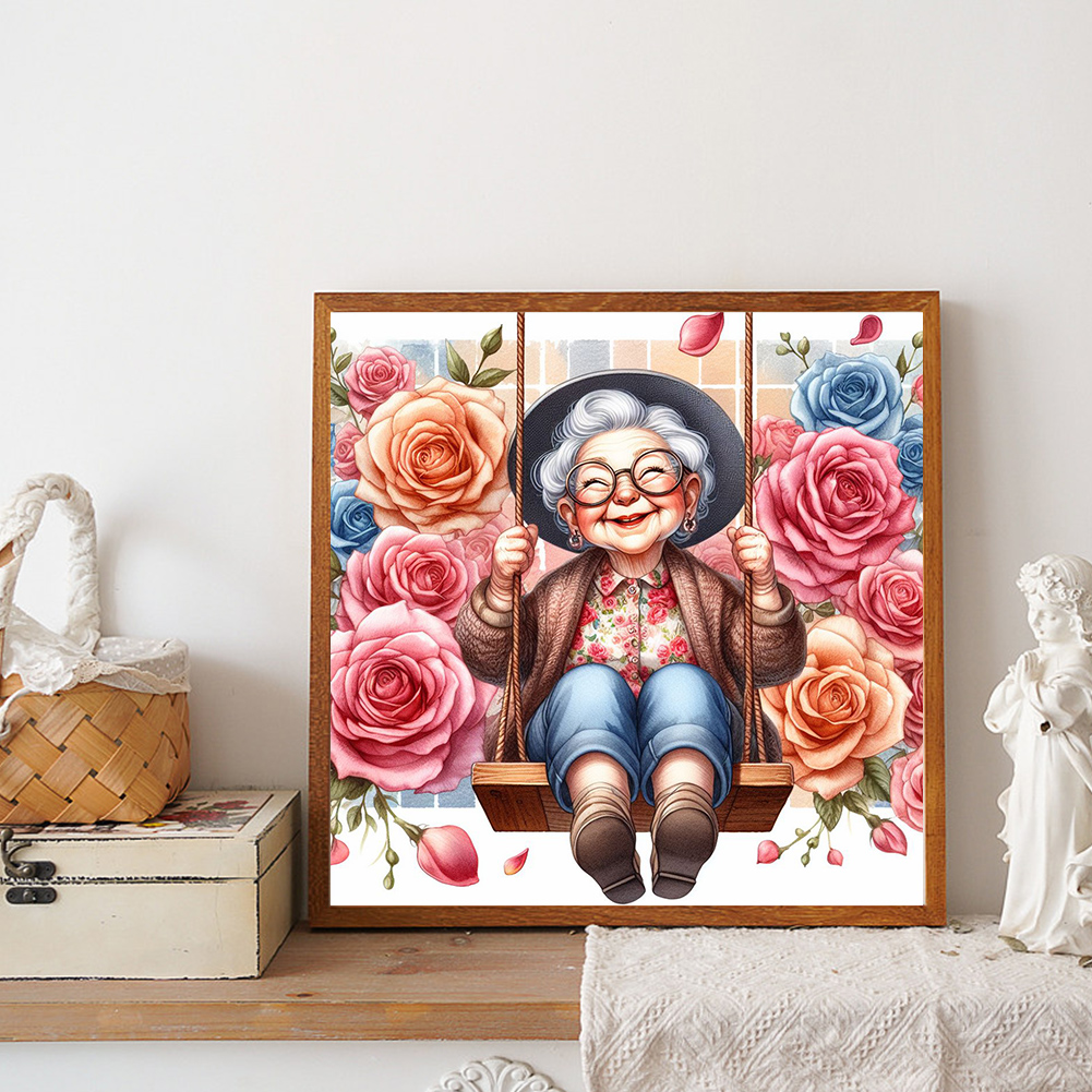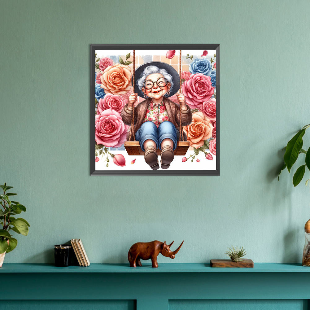 Diamond Painting - Full Round Drill - Swing Old Lady(Canvas|30*30cm)