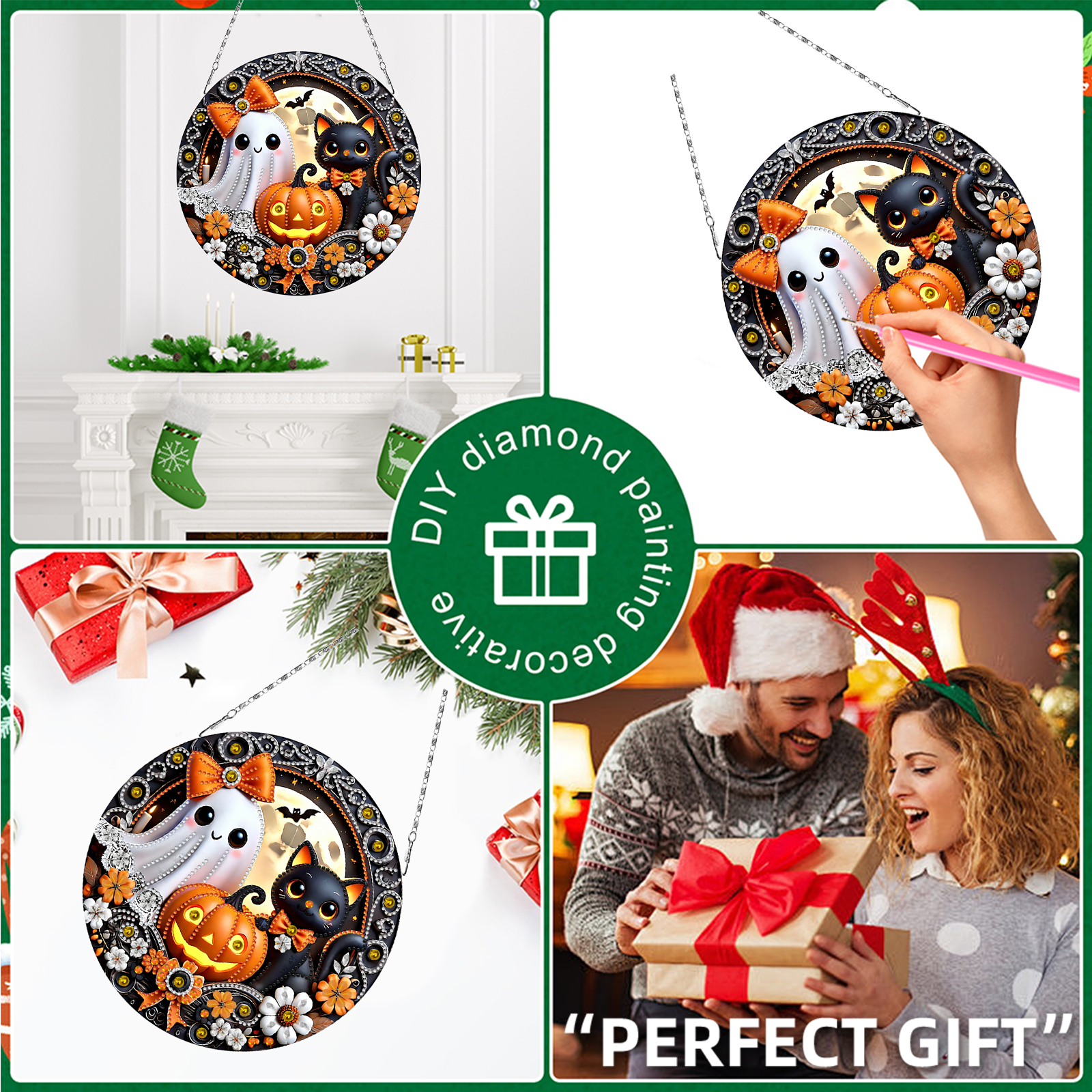 2D Flat DIY Halloween Diamond Art Pendant Double-Sided Diamond Painting Set