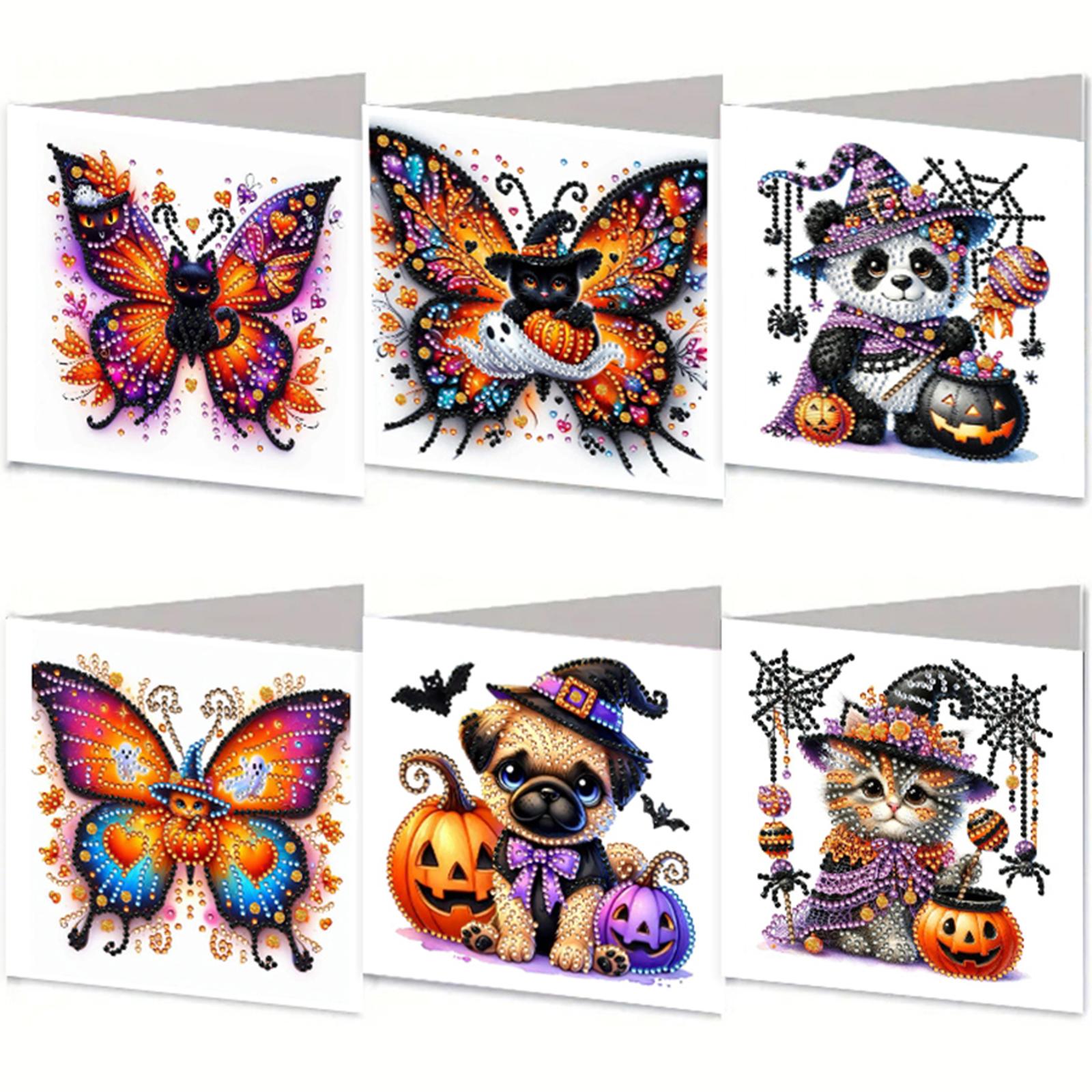 6PCS DIY Halloween Designs Diamond Art Greeting Cards for Halloween and Holidays