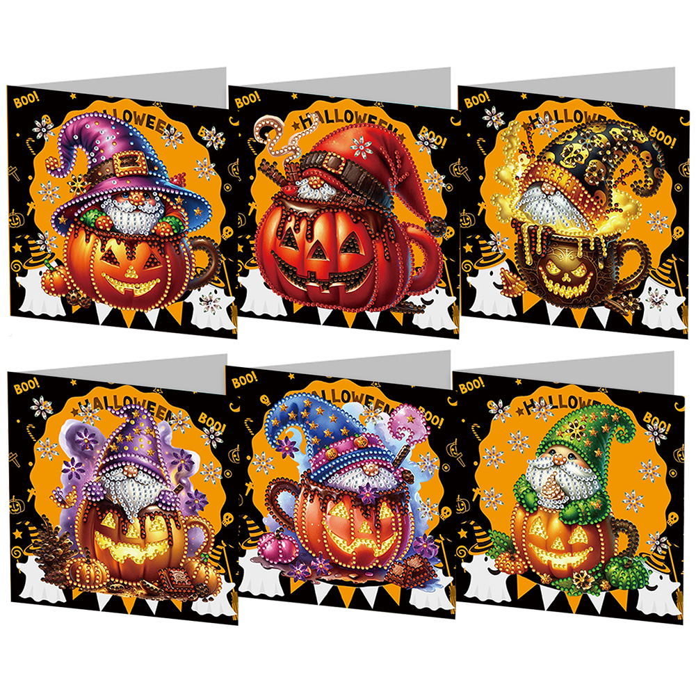 6pcs DIY Halloween Pumpkin Gnome Special Shape Diamond Painting Greeting Card Kit【With White Envelope】