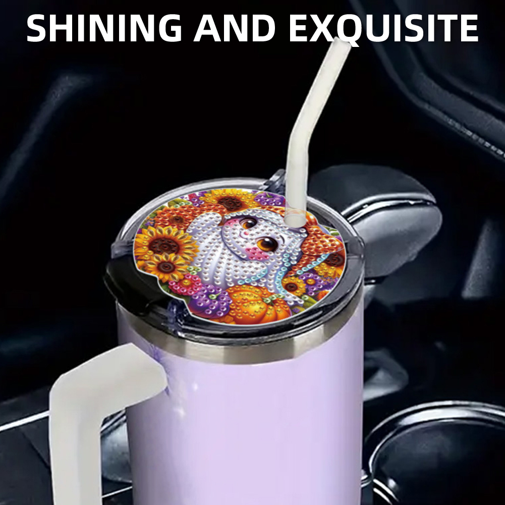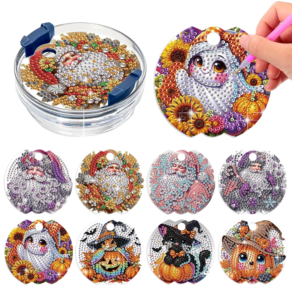 8pcs Christmas Halloween DIY Diamond Art Cup Lid Accessories Tumbler Lid Plate