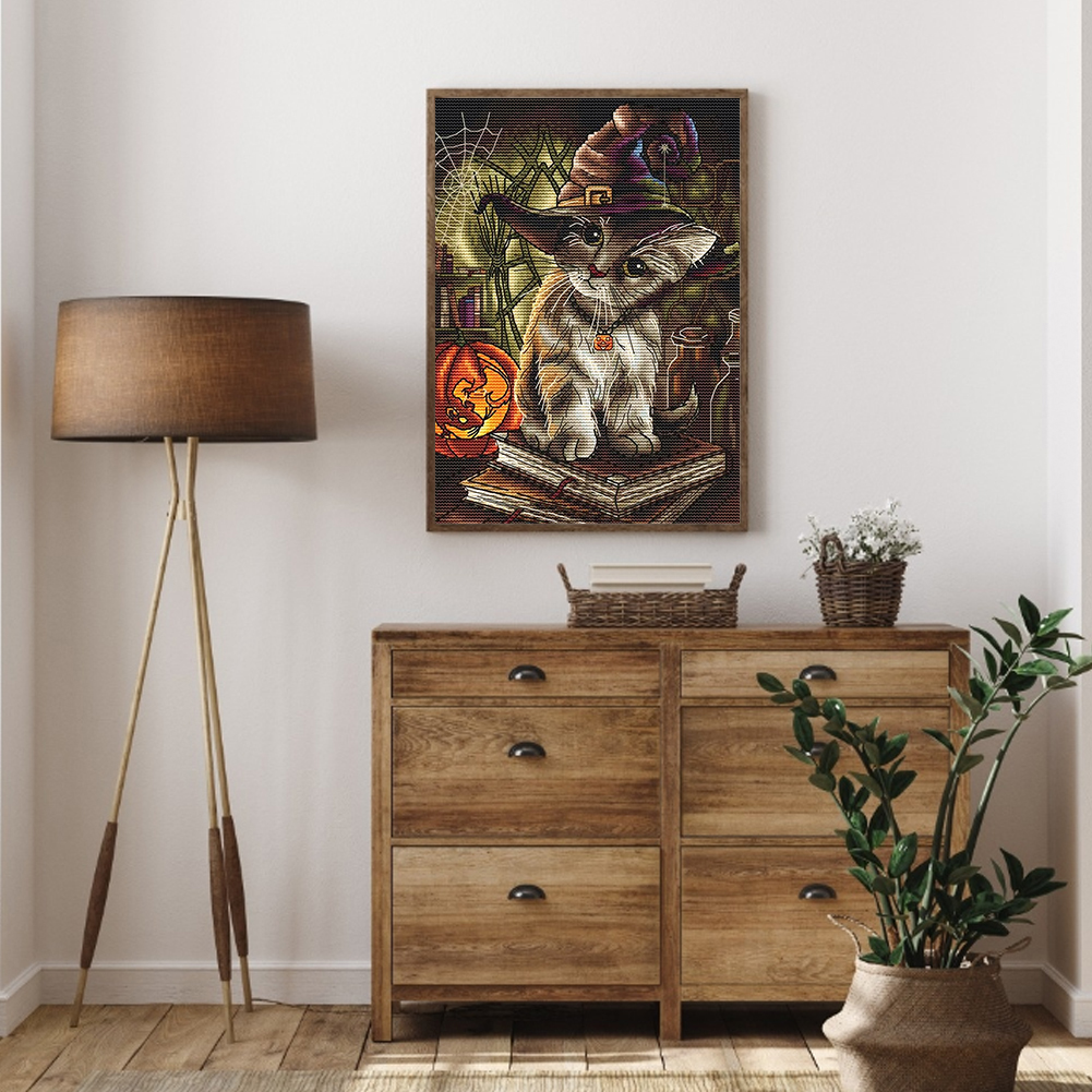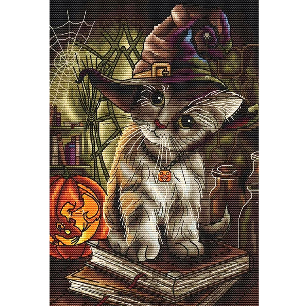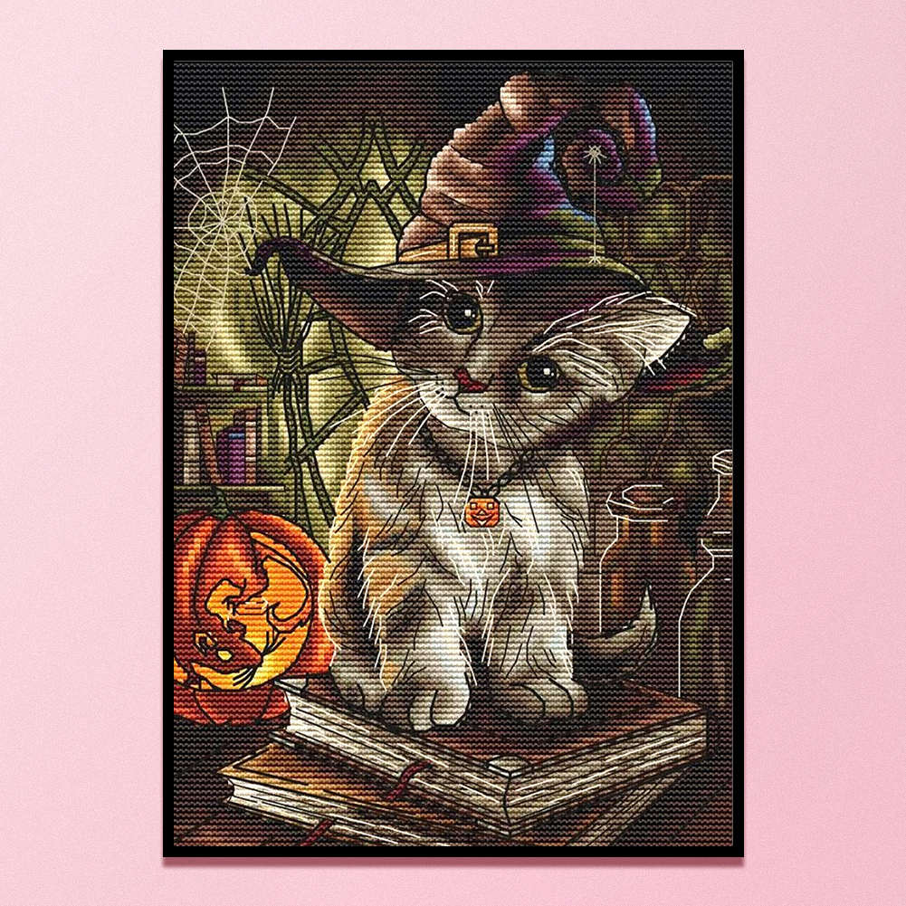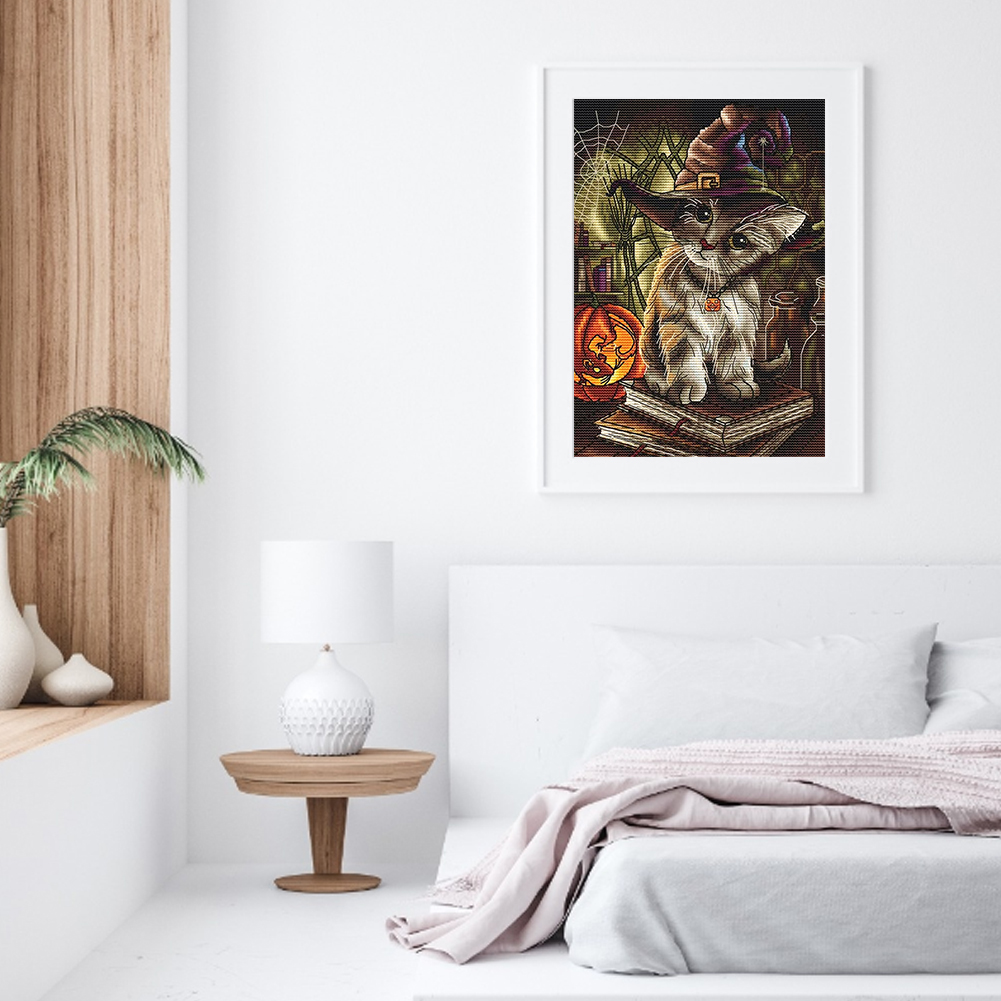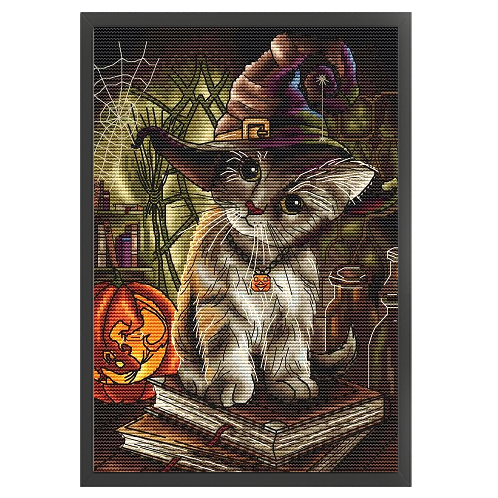 14CT DIY Halloween Cats Counted Cross Stitch Cotton Thread Set Cotton Thread Full Embroidery Kits Art Handmade Needlework Home Decoration Gift
