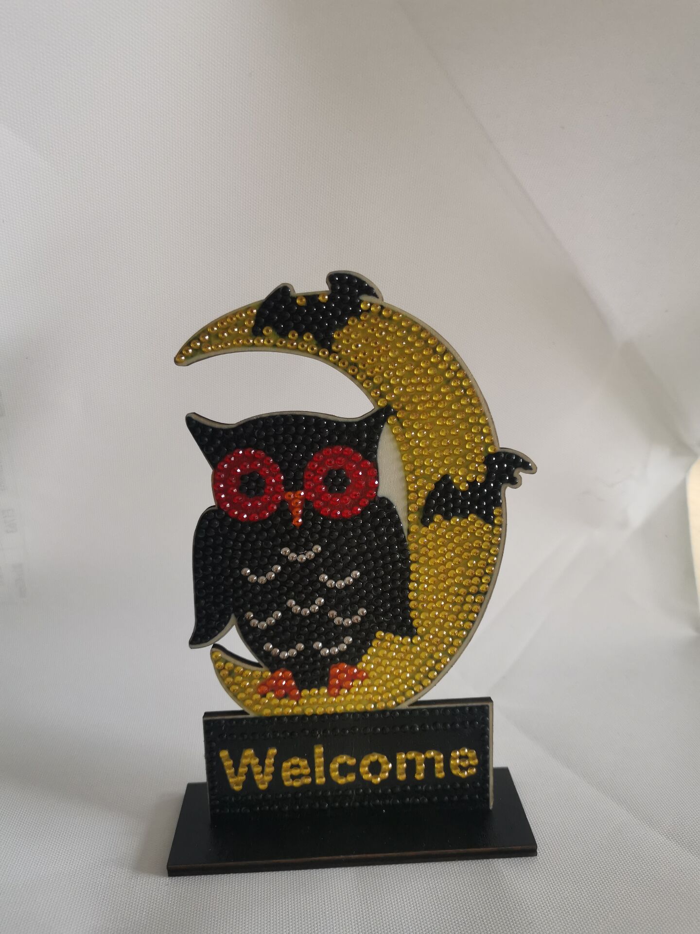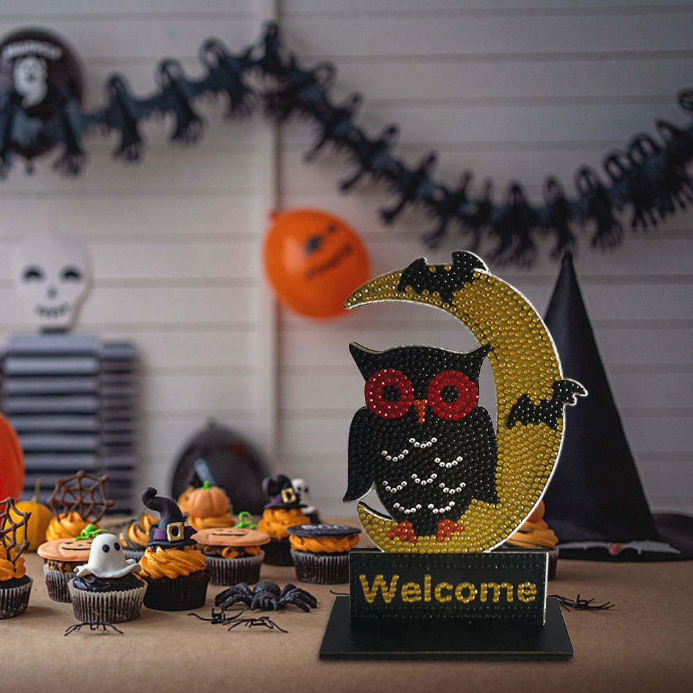Halloween Wooden Spot Diamond Decoration Moon Owl (Single-sided Crystal Diamond)