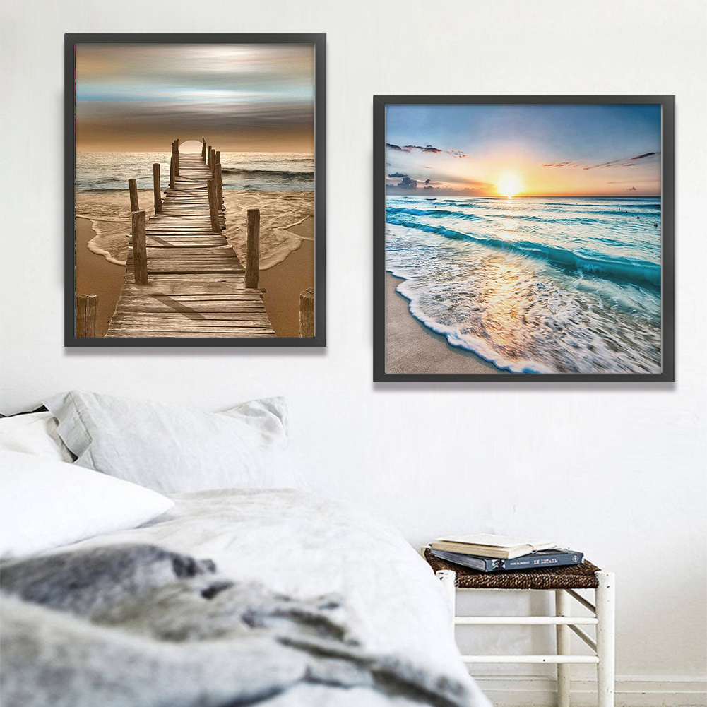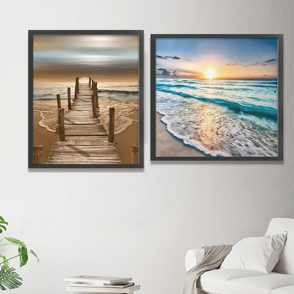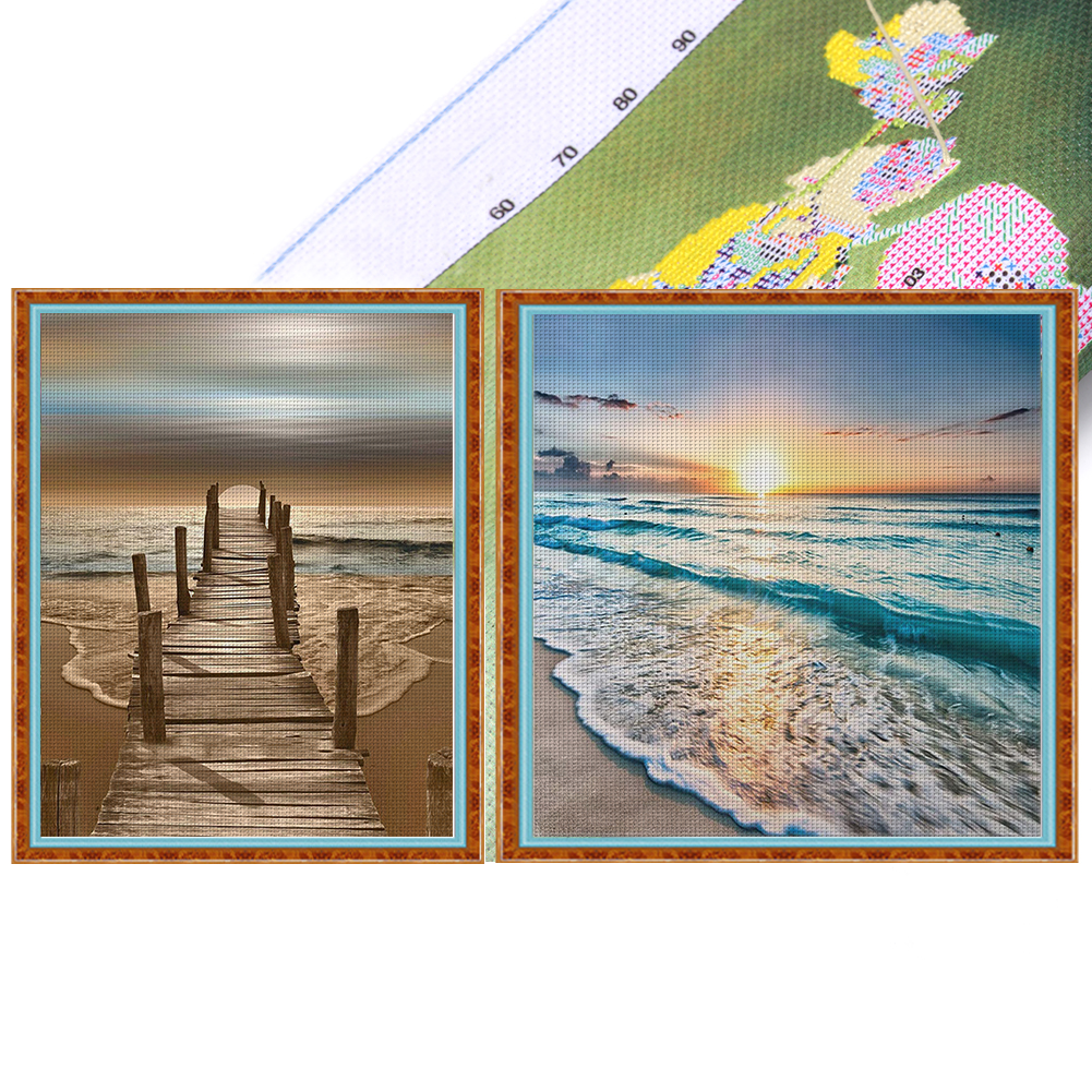 (2pcs)11CT Full Stamped Cross Stitch - Seaside(Canvas|40*40CM)/(Canvas|36*46CM)