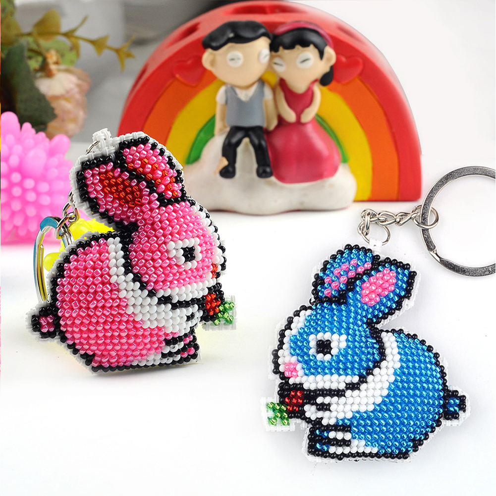 2Pcs Bunny - Stamped Bead Embroidery - Keychain