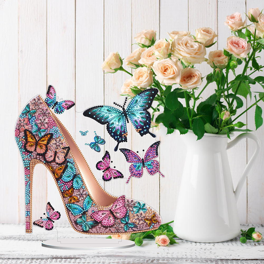 Acrylic Special Shape Elegant High Heels Table Top Diamond Painting Ornament Kits Desktop Diamond Art Kits for Home Office Decor