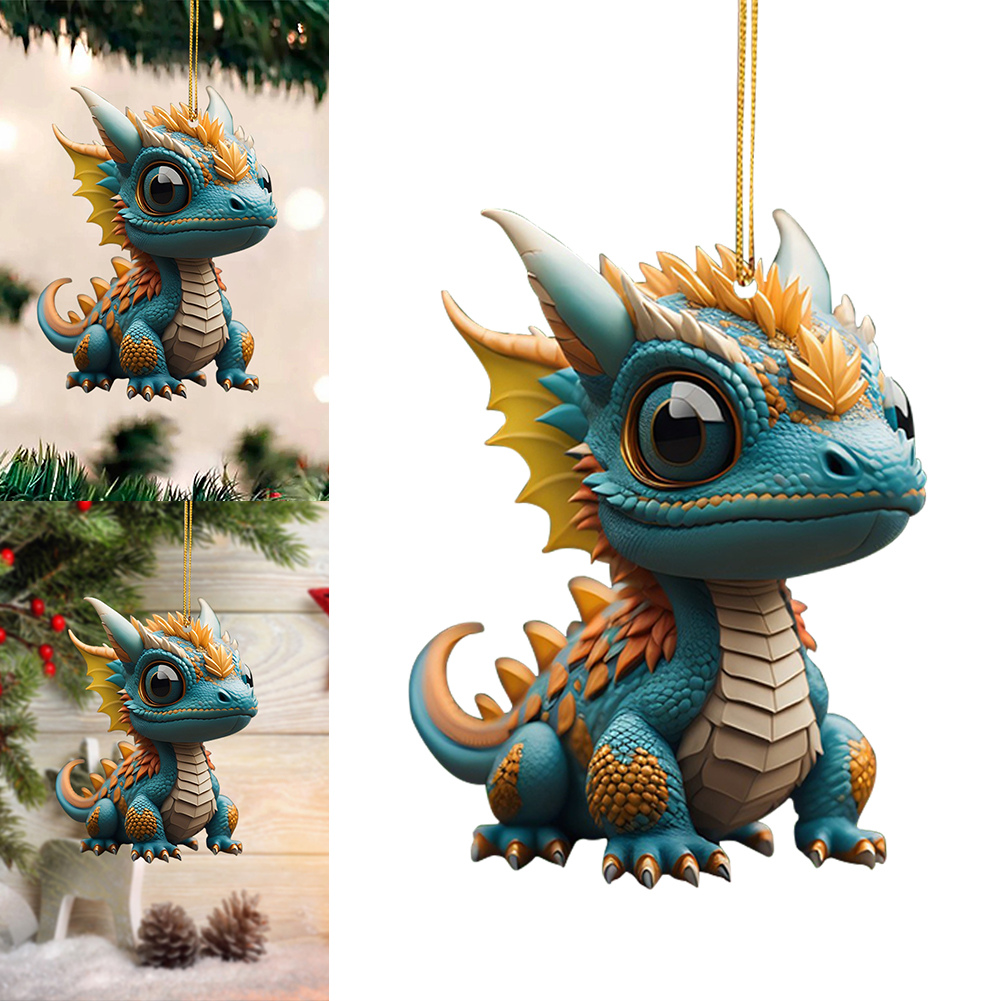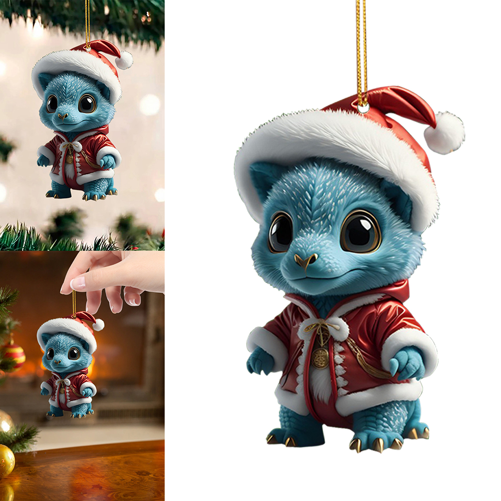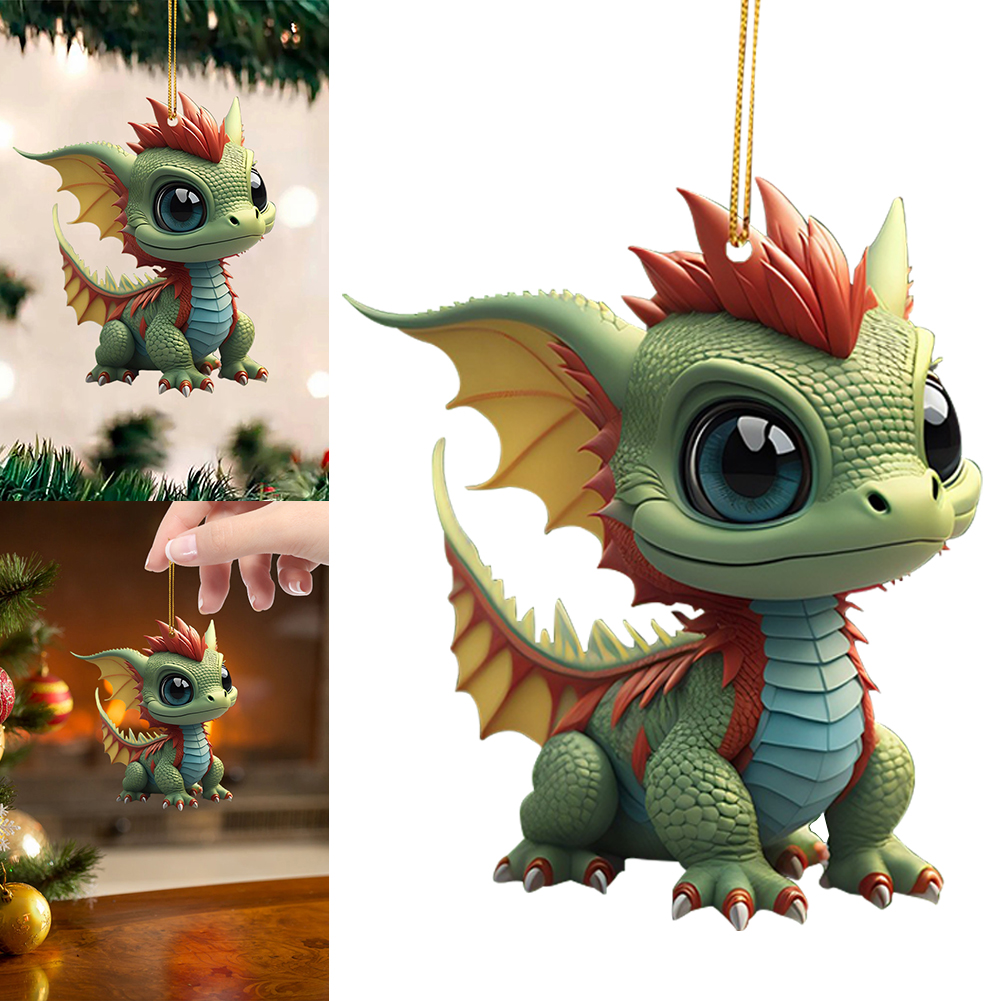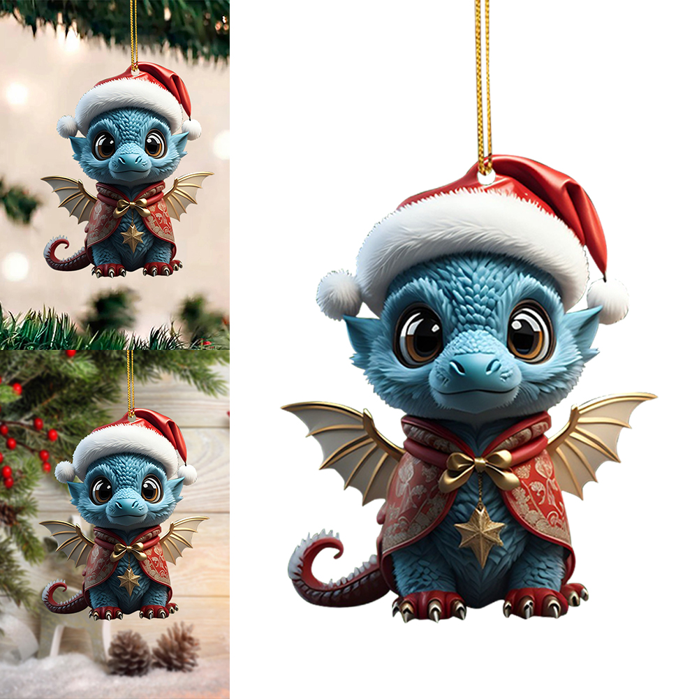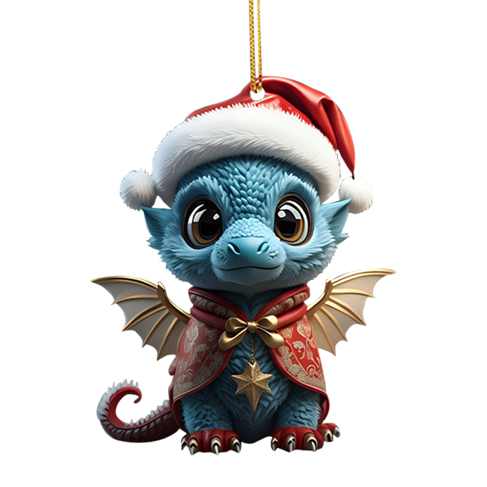 2D Christmas Baby Dragon Decor Cute 8cm Flat Acrylic Hanging Ornament Party Gift