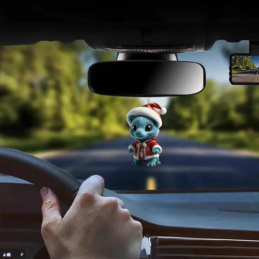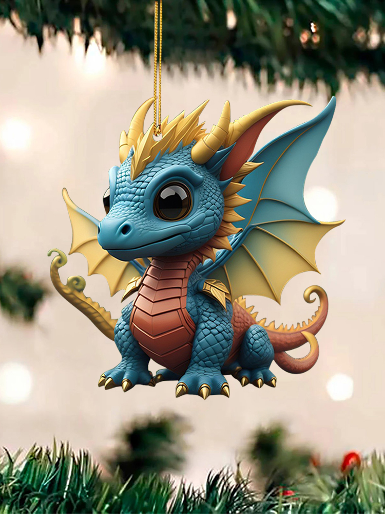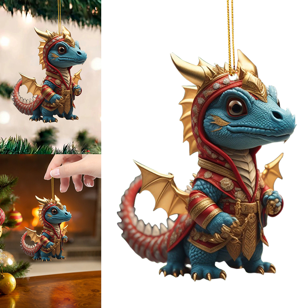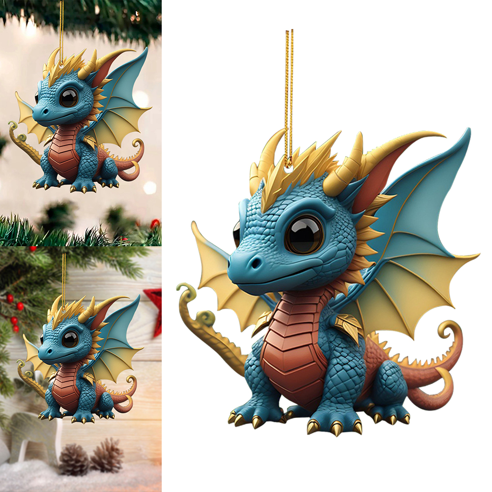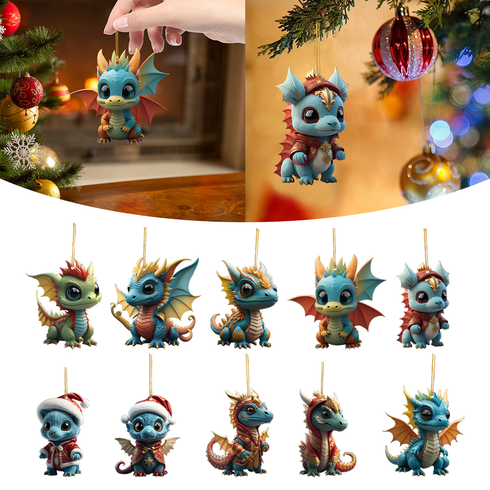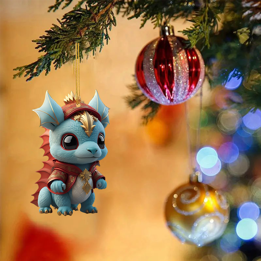2D Christmas Baby Dragon Decor Cute 8cm Flat Acrylic Hanging Ornament Party Gift