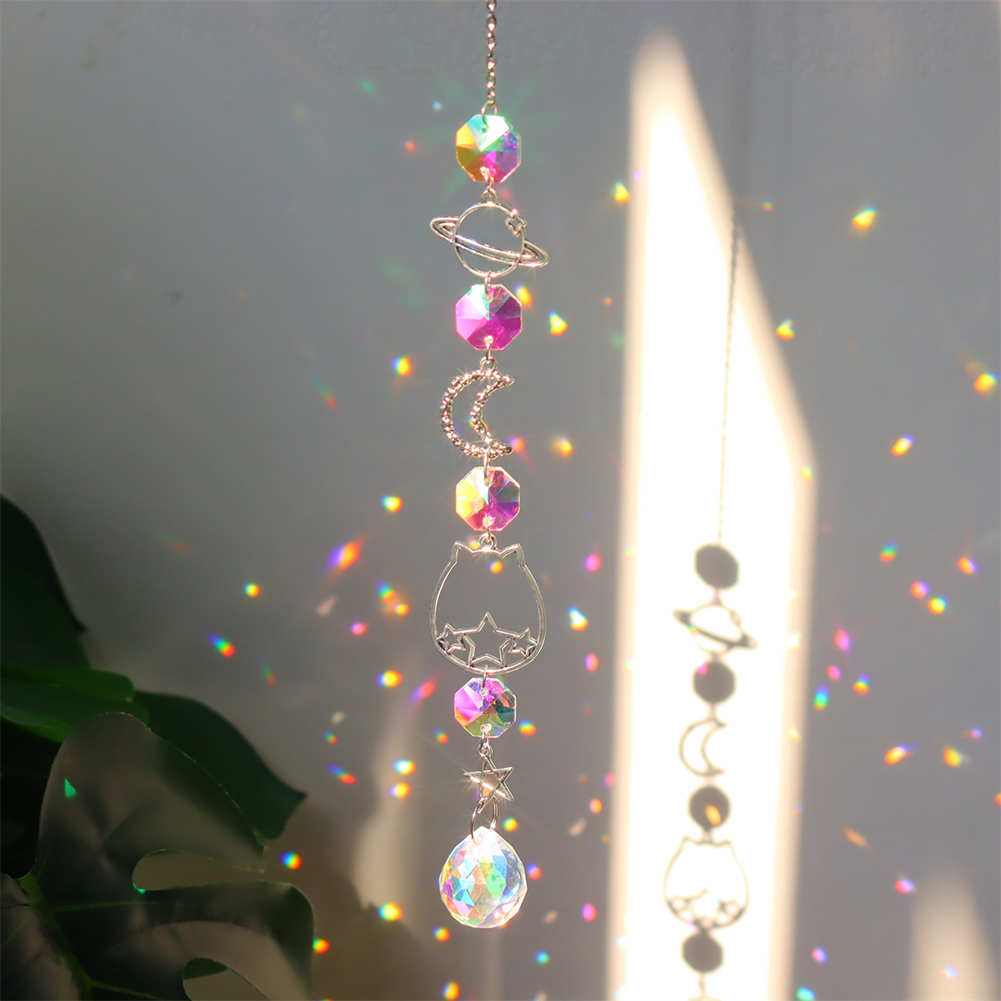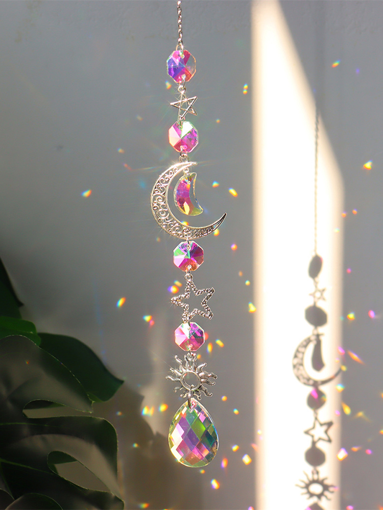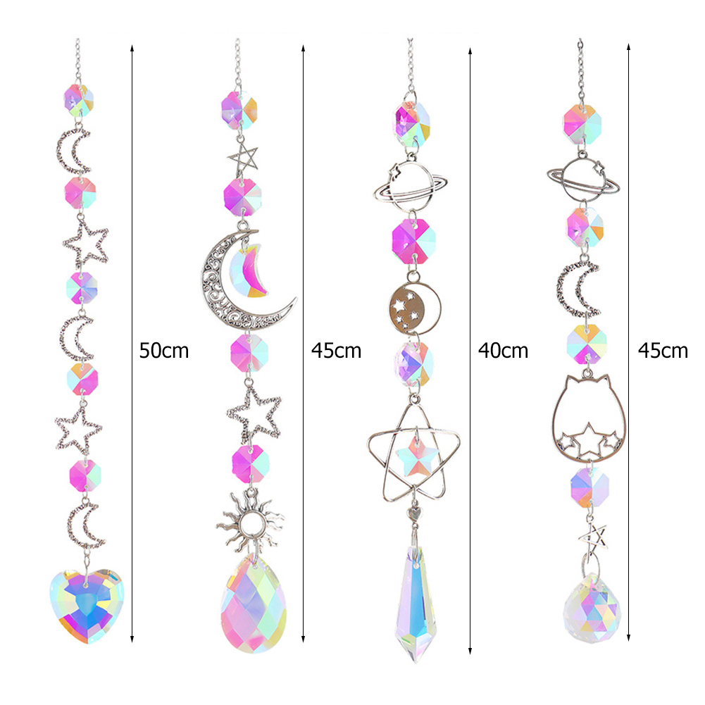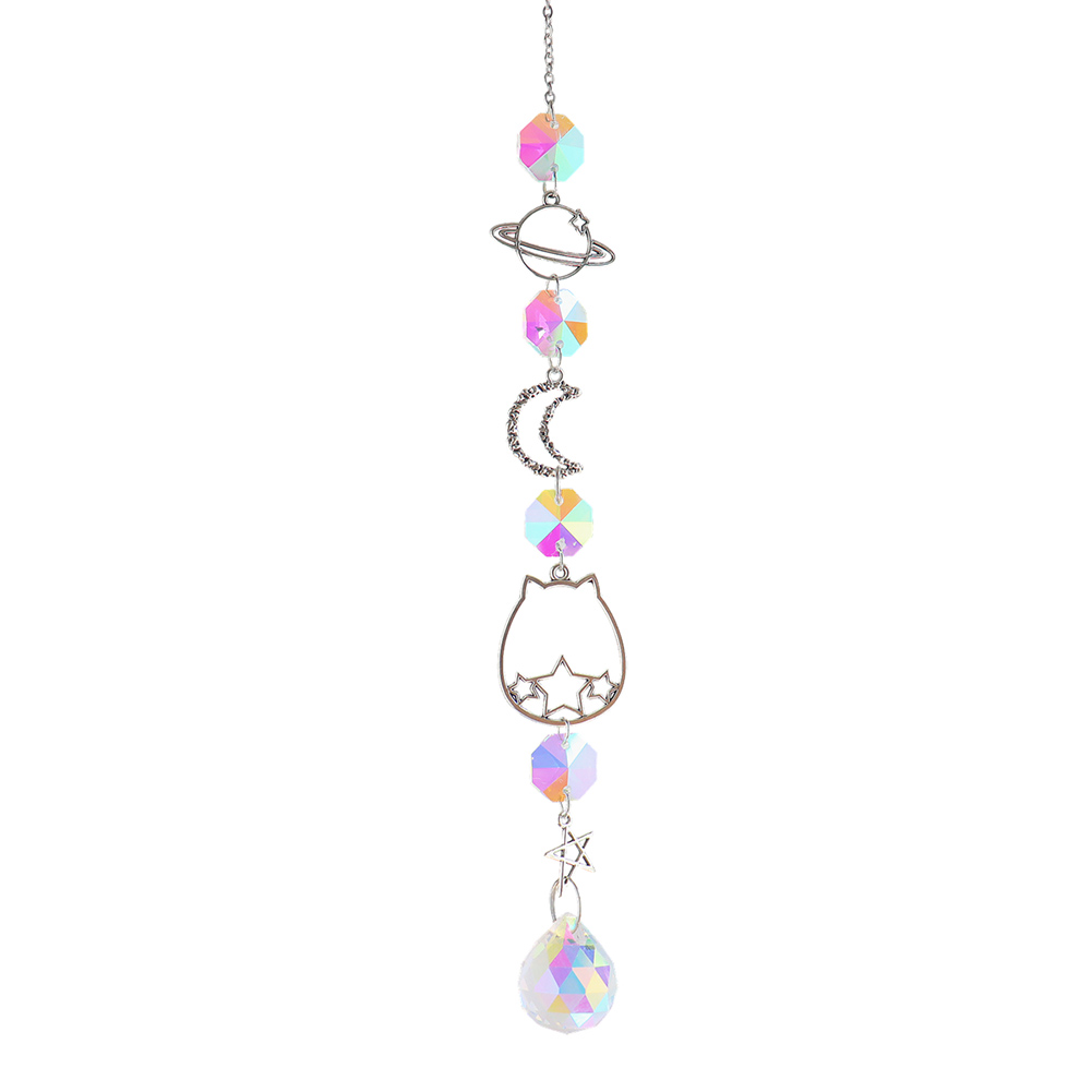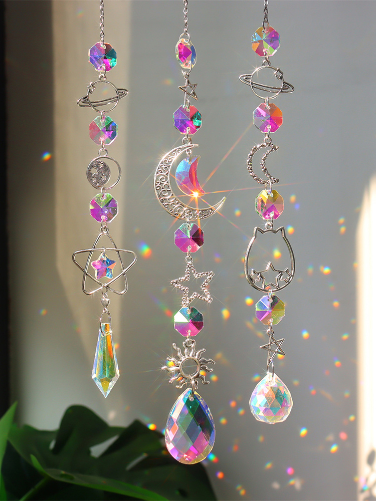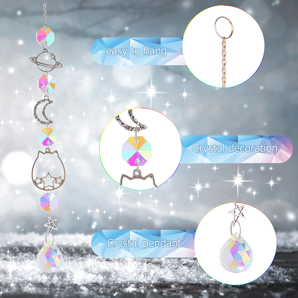 Crystal Wind Chimes Colorful Planet Star Moon Metal Hanging Prisms Light Catcher Ornament for Window Curtain Jewelry Pendant Chandelier Home Garden Car Room Decor Gifts