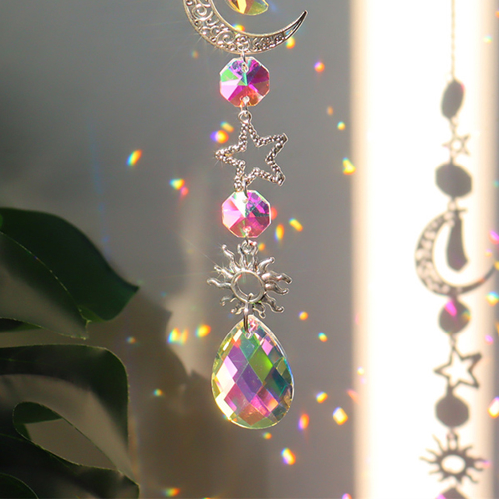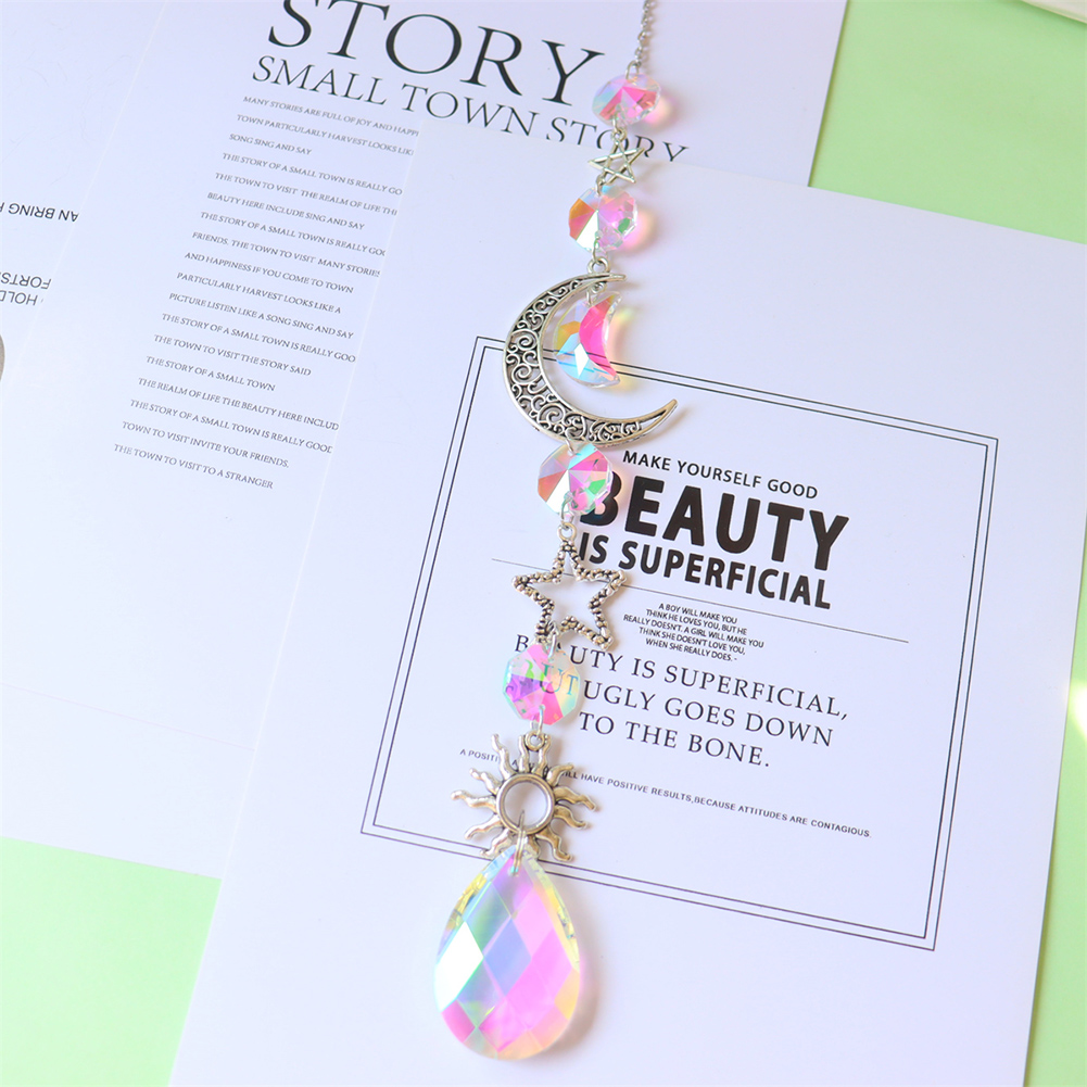 Crystal Wind Chimes Colorful Planet Star Moon Metal Hanging Prisms Light Catcher Ornament for Window Curtain Jewelry Pendant Chandelier Home Garden Car Room Decor Gifts
