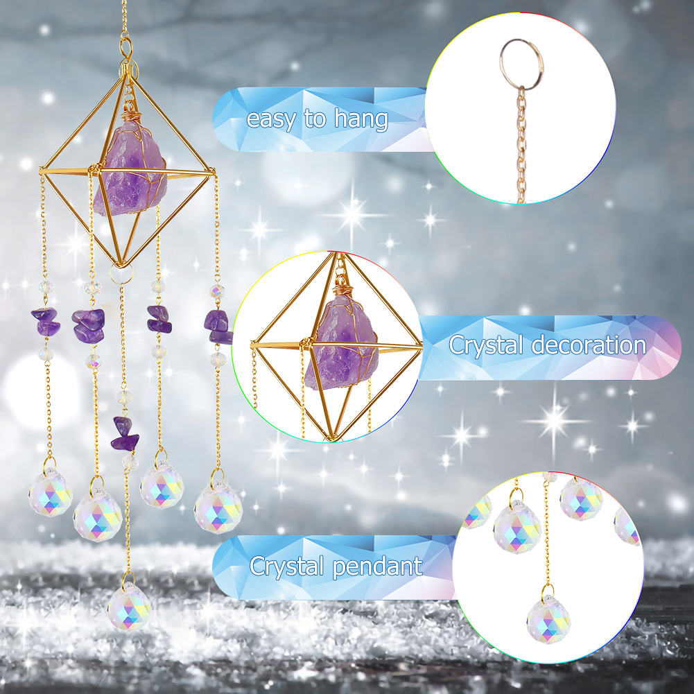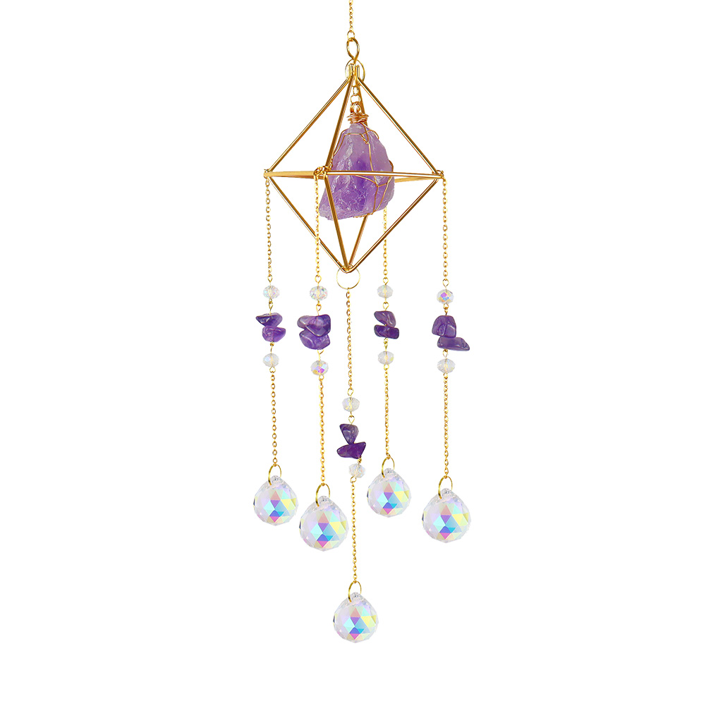 Crystal Wind Chimes Natural Stone Prism Light Catcher Garden Decor (Purple)