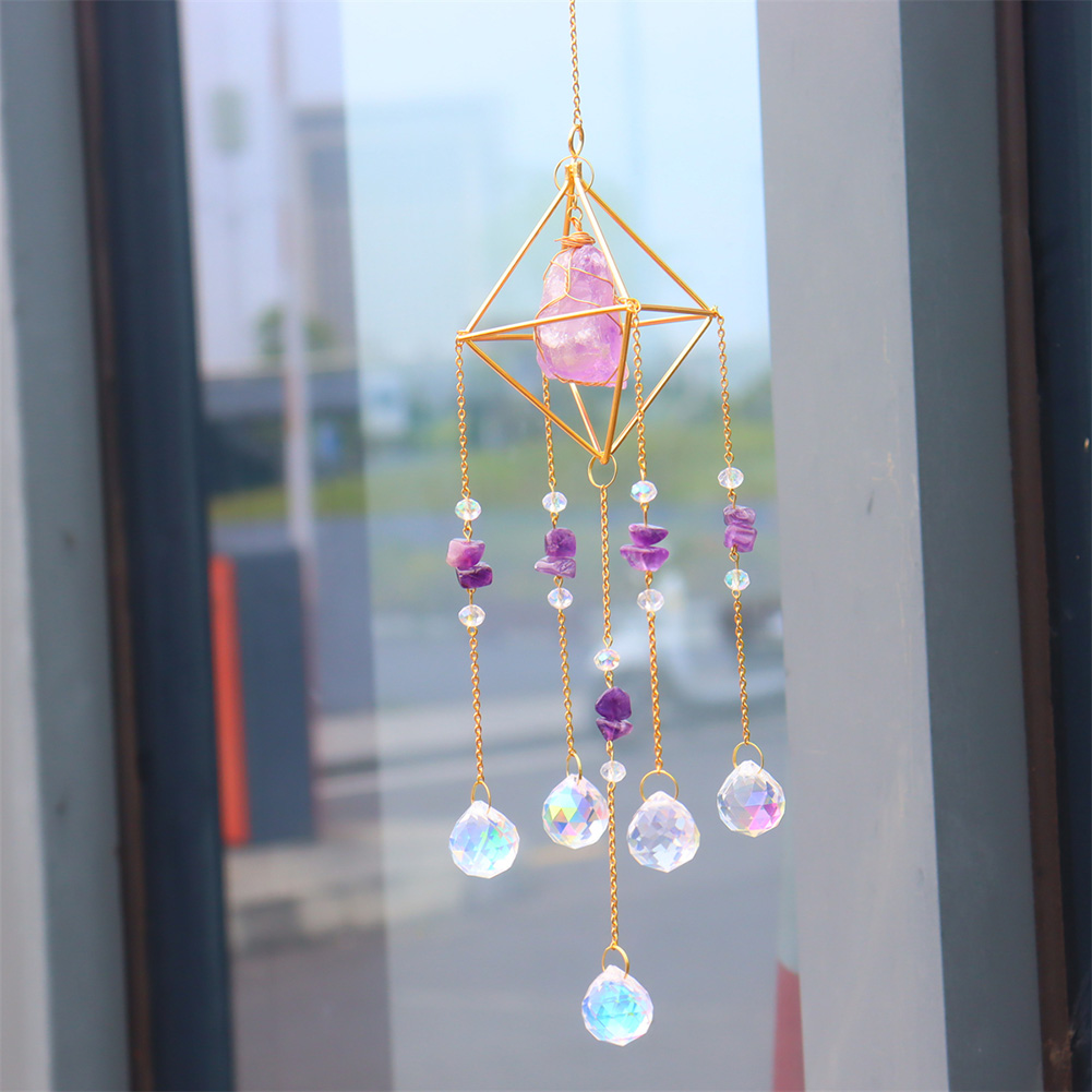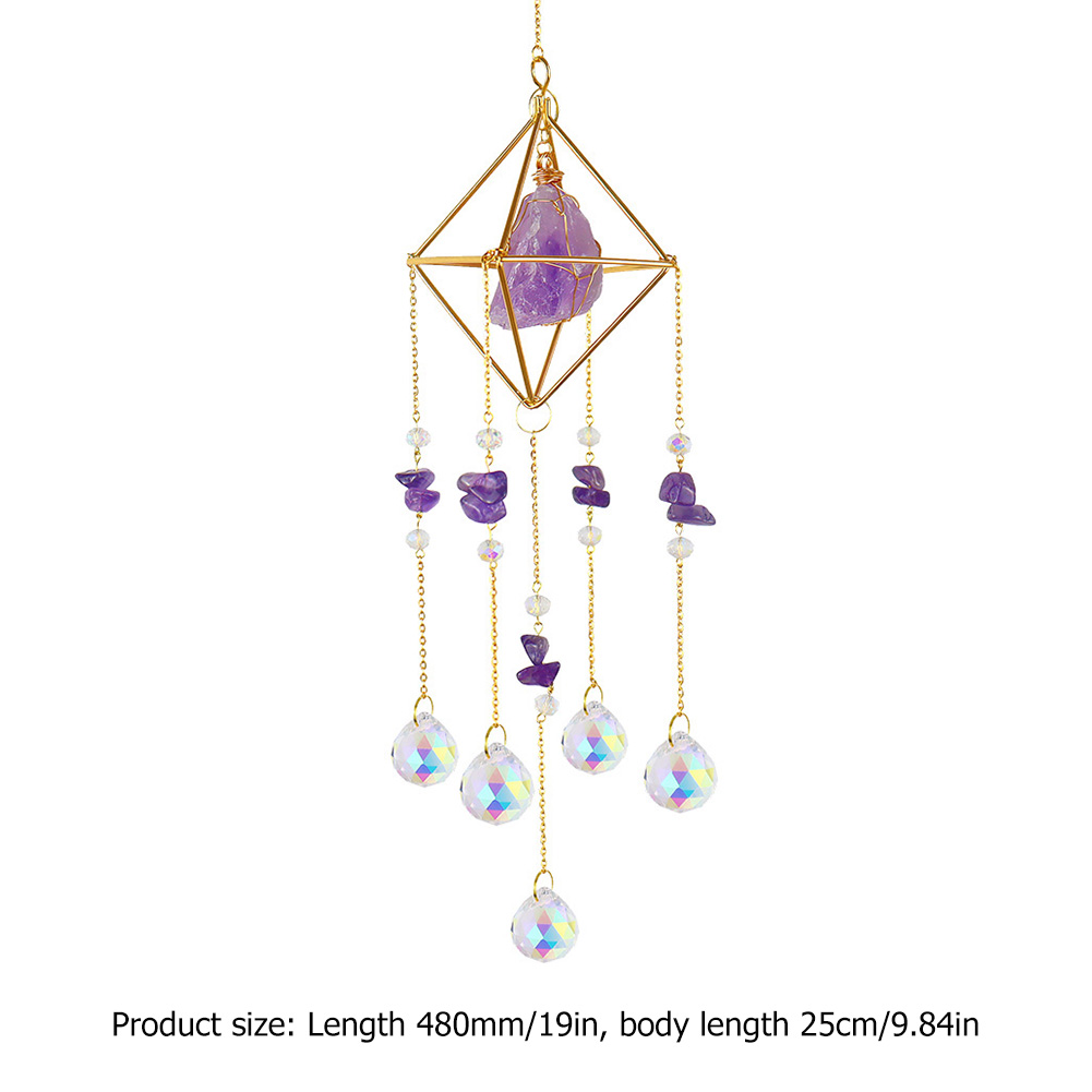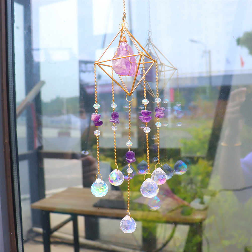 Crystal Wind Chimes Natural Stone Metal Hanging Prisms Lighting Ball Catcher Ornament Window Curtain Jewelry Pendant Chandelier Home Garden Car Room Decor Gifts