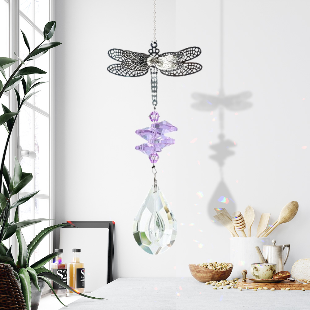 DIY Dragonfly Window Hanging Crystal Garland Suncatcher Pendant (Purple)