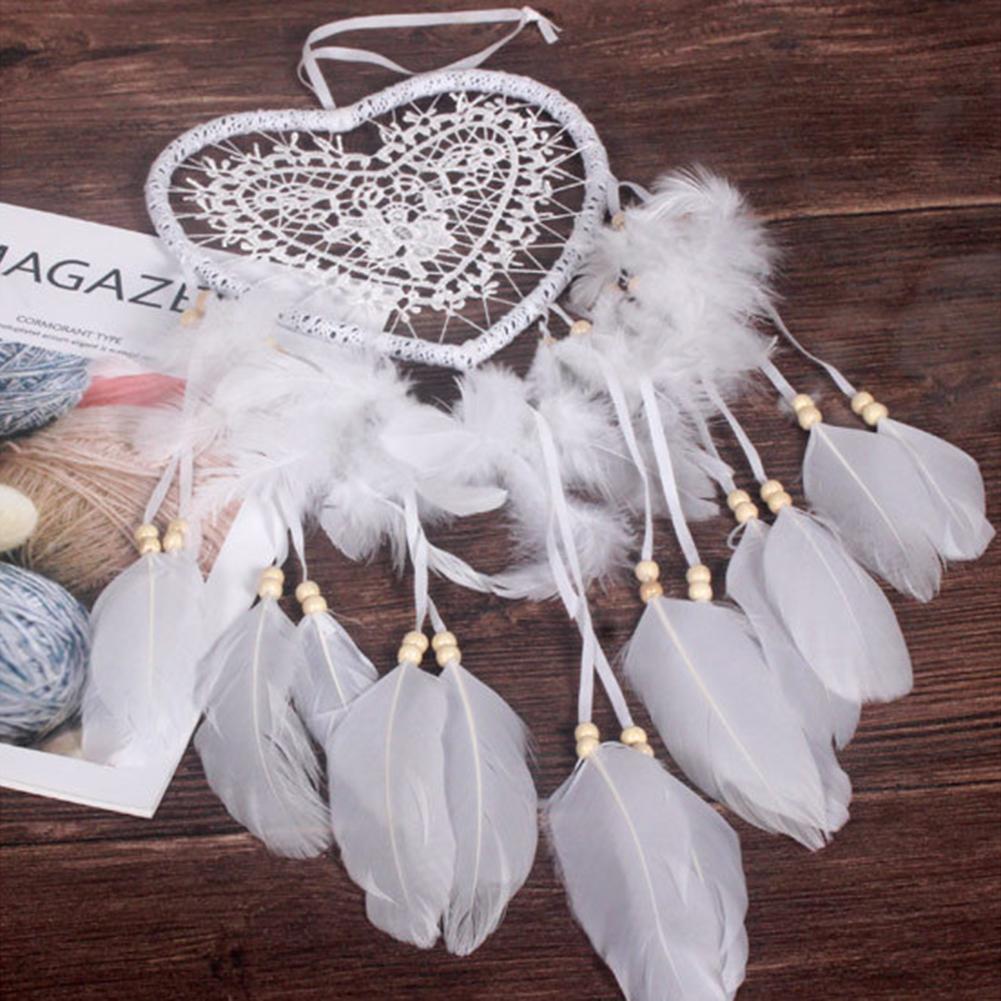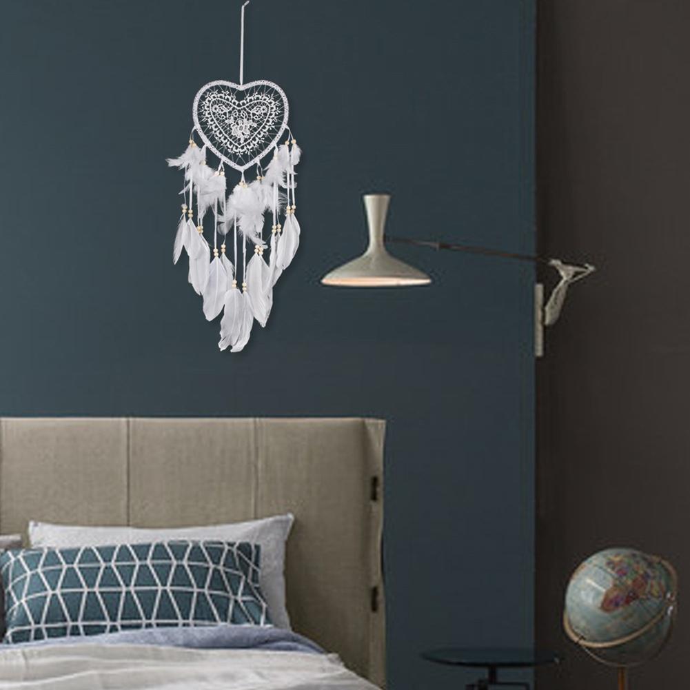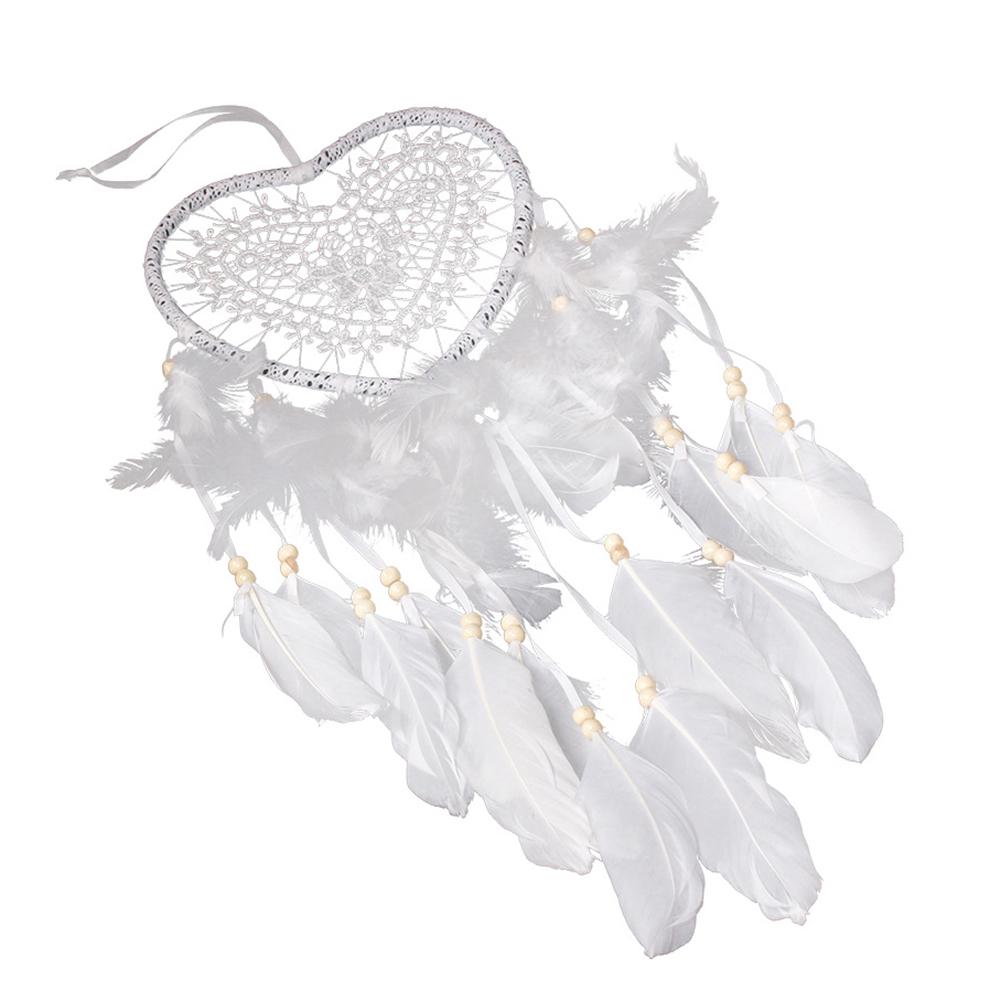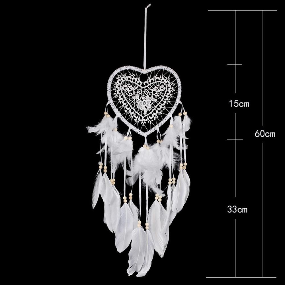 Heart Dream Catcher LED Light Feathers Wall Hanging Dreamcatcher (White)