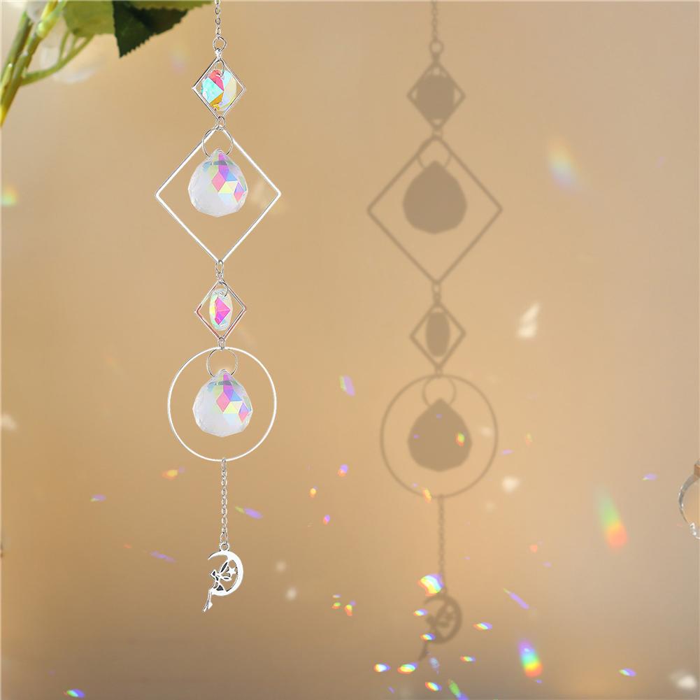 Wind Chime Crystal Light Catcher Ball Ornaments Round Frame Pendant (2)