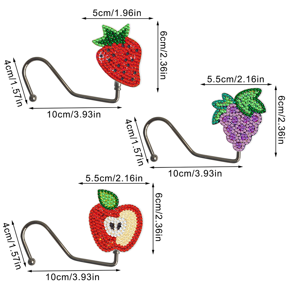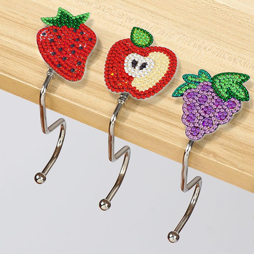 3Pcs Cute Cartoon Rhinestone Painting Keychain Hanger Diamond Art Craft Wall Hooks for Home Office Decoration