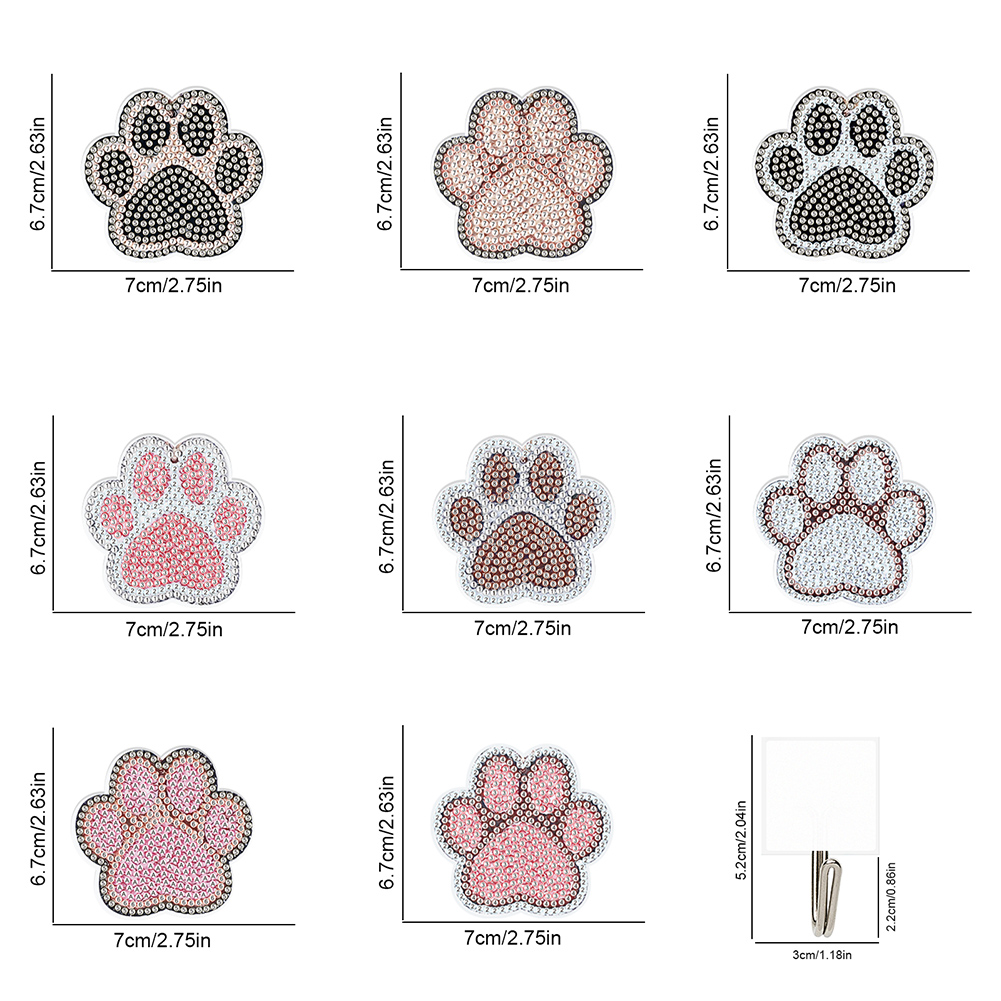 5D DIY 8Pcs Cute Paw Diamond Painting Hooks Diamond Art Craft Wall Hooks Home Decor