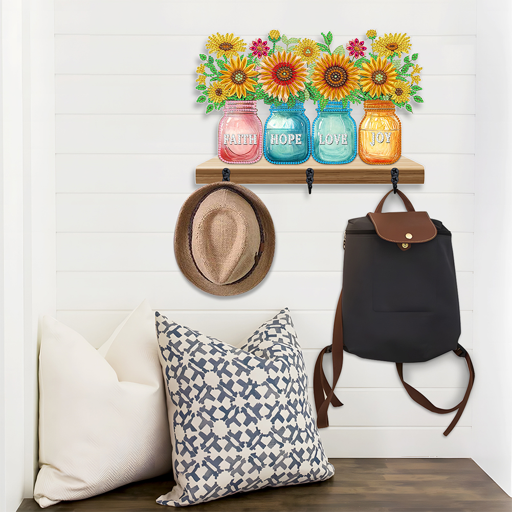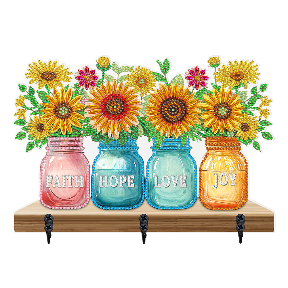 5D DIY Sunflower Vase Diamond Art Hooks Rhinestone Painting Coat Hook
