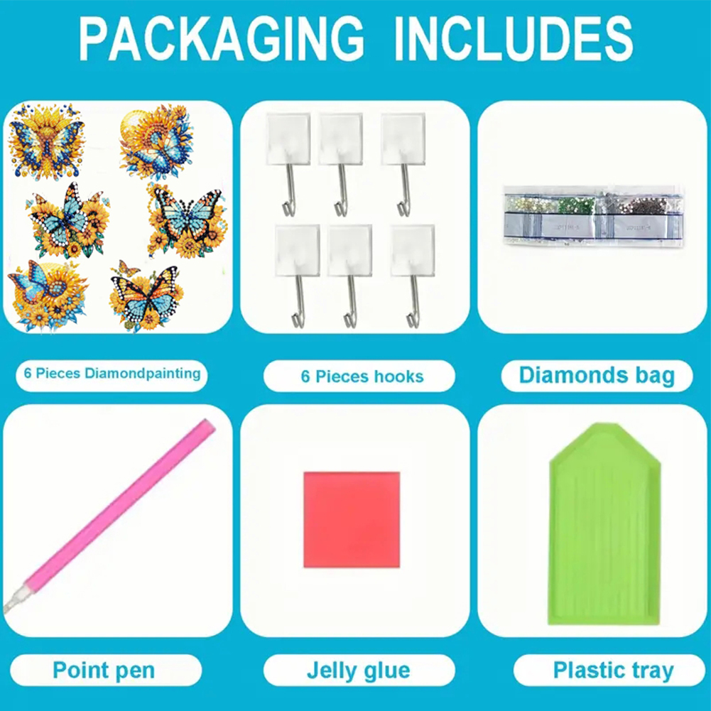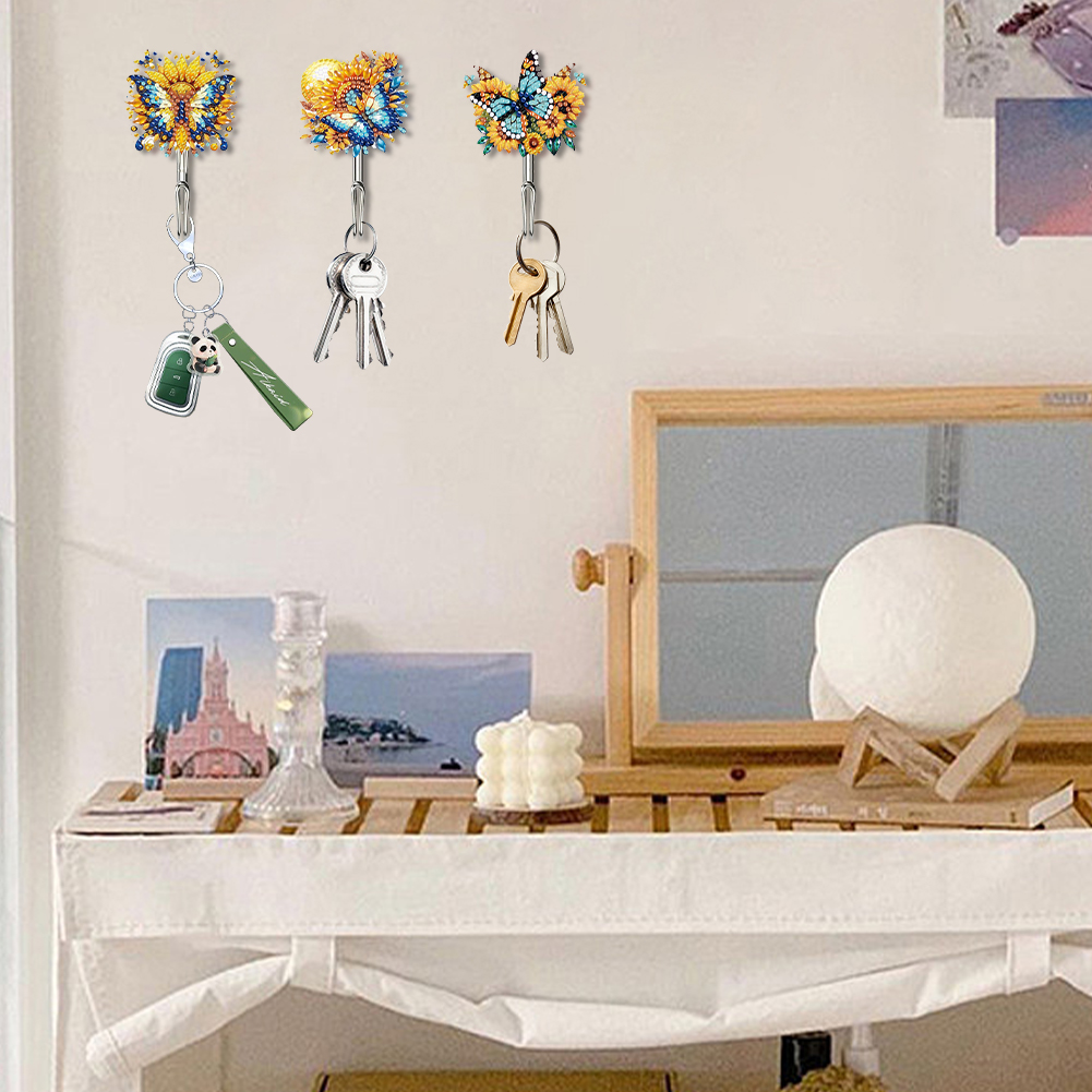 6Pcs Diamond Painting Hooks Sunflower Butterfly Diamond Art Craft Wall Hooks