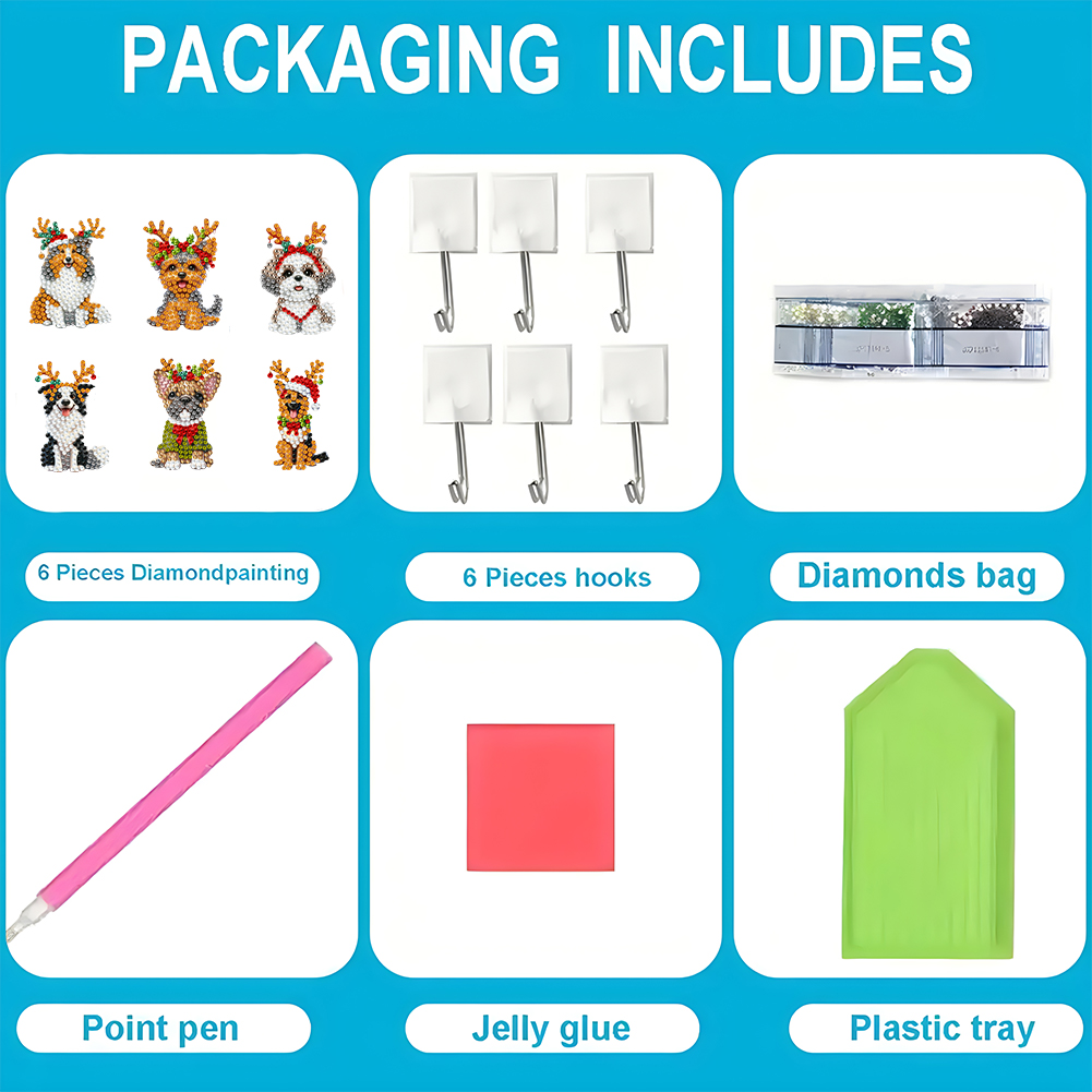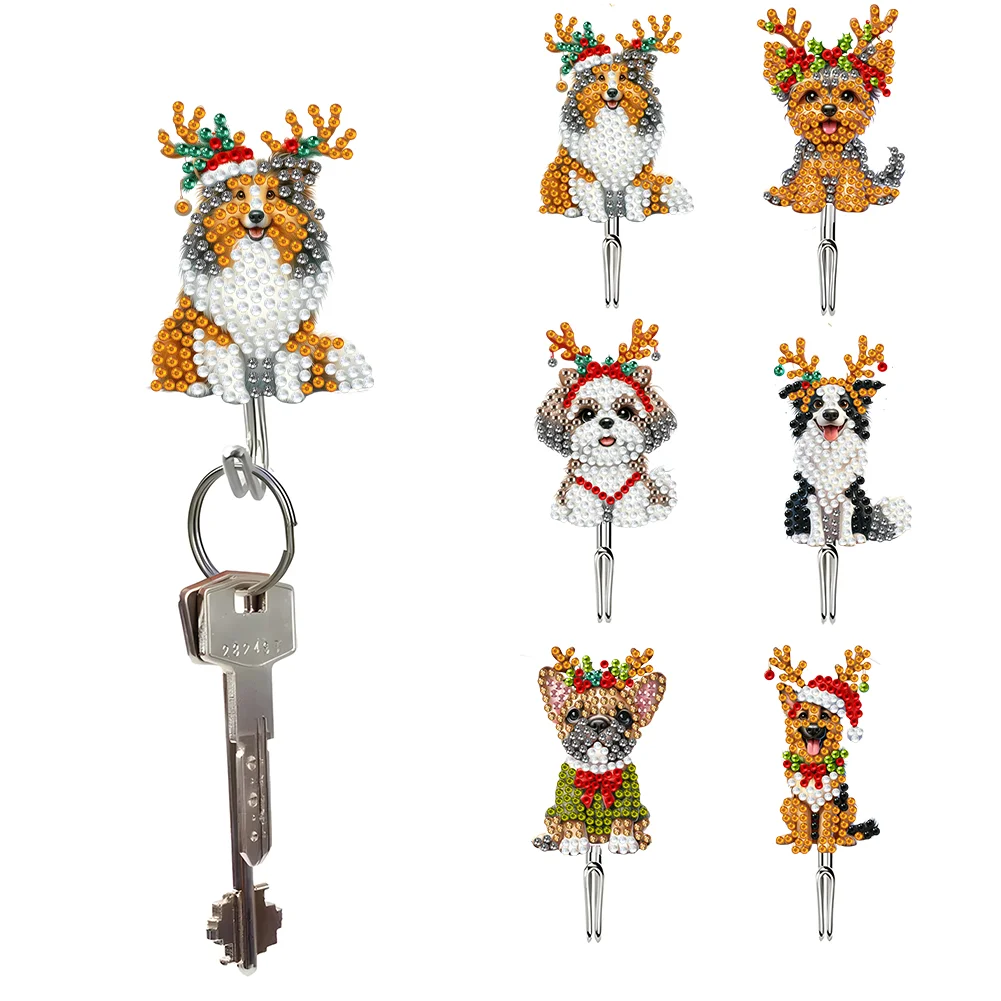 6Pcs DIY Christmas Dog Diamond Painting Hooks Christmas Diamond Art Wall Hooks