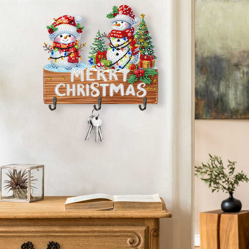 DIY Christmas Snowman Wooden Christmas Diamond Art Hanging Hooks Home Decor