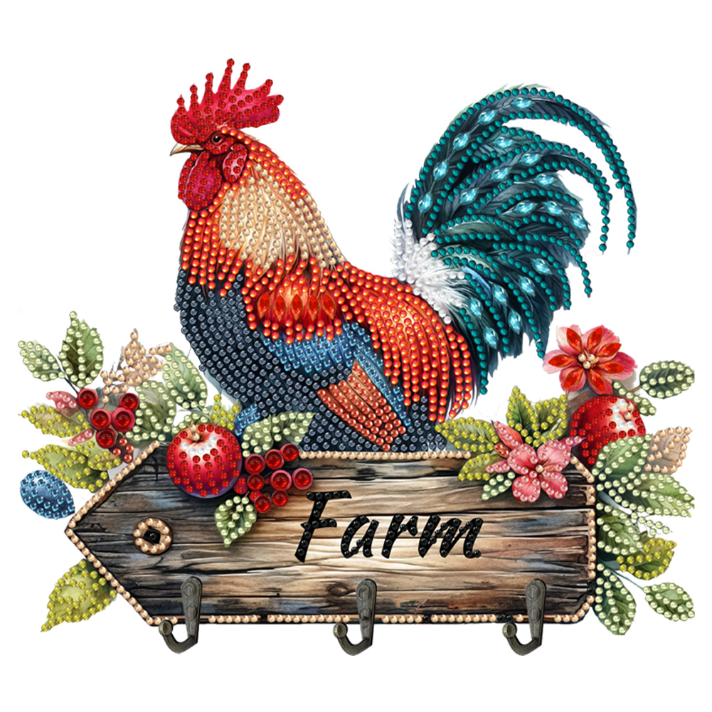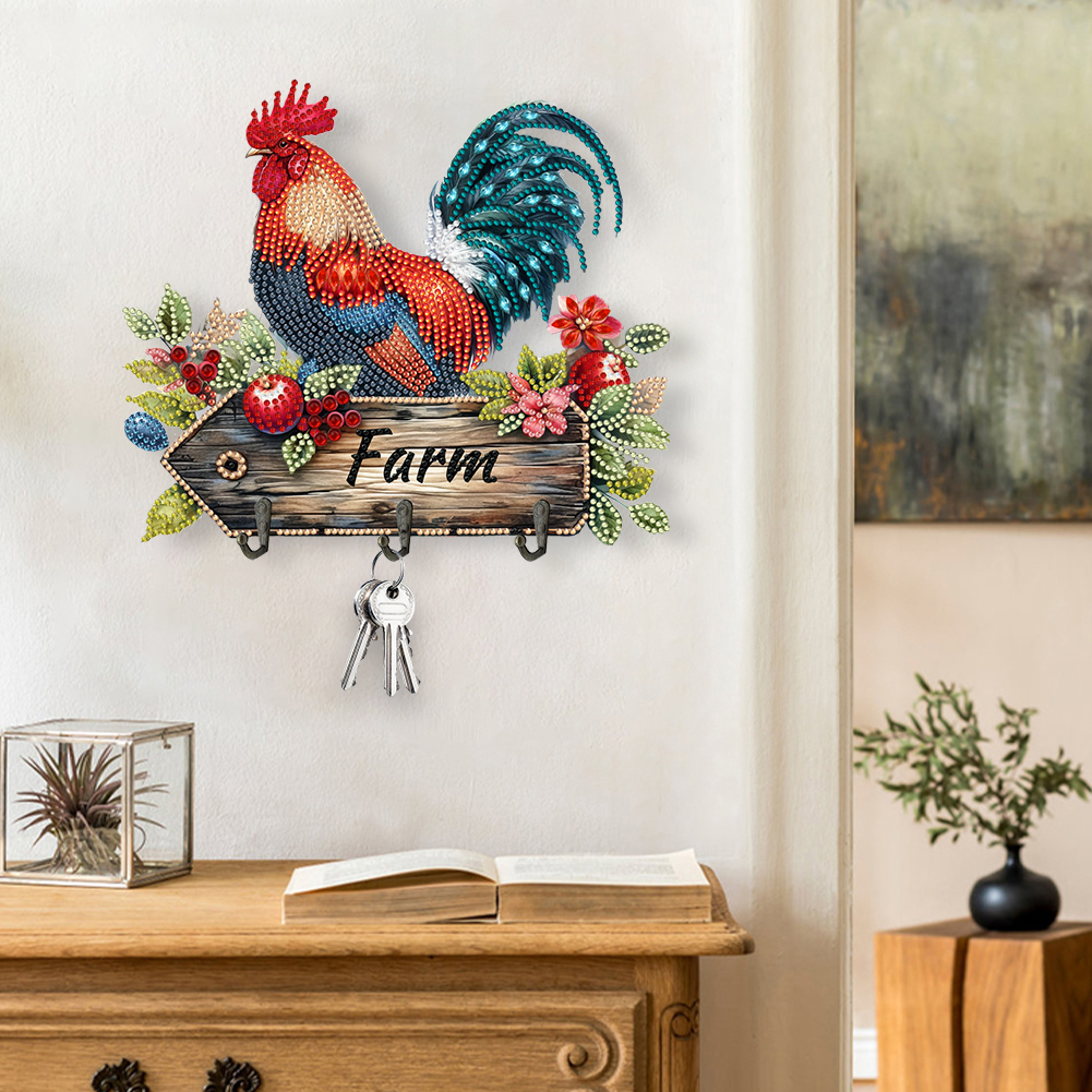DIY Farm Rooster Wooden Diamond Painting Hanging Hooks for Beginners Adults(24*20cm)