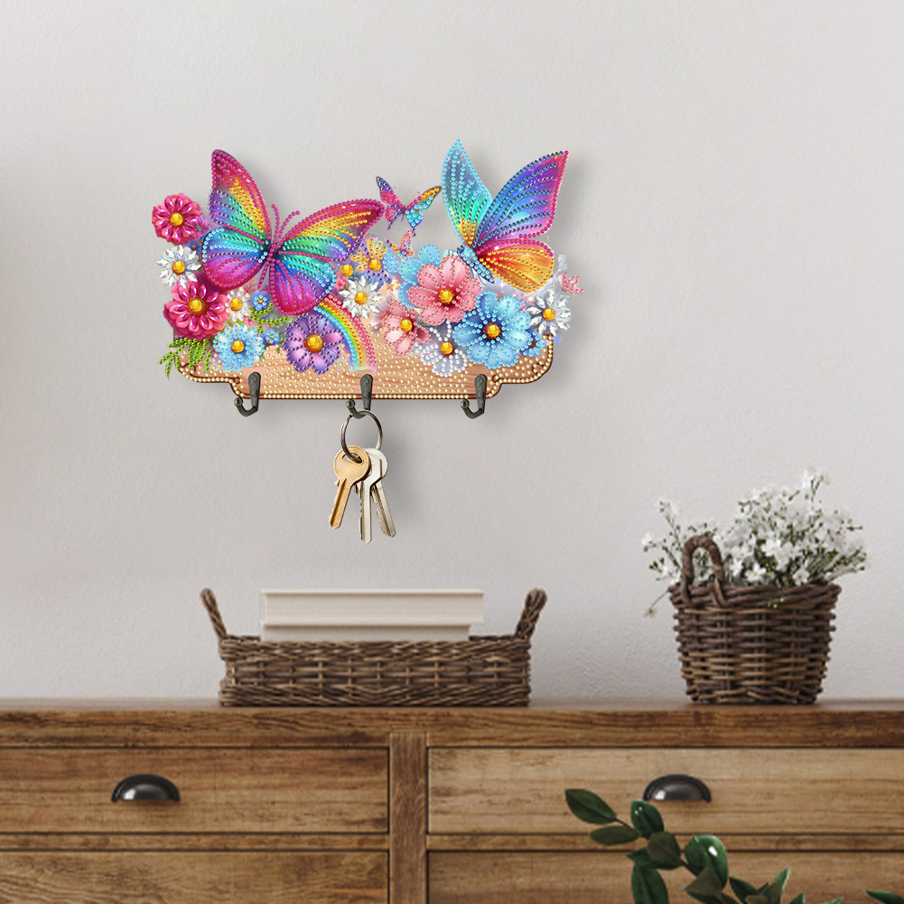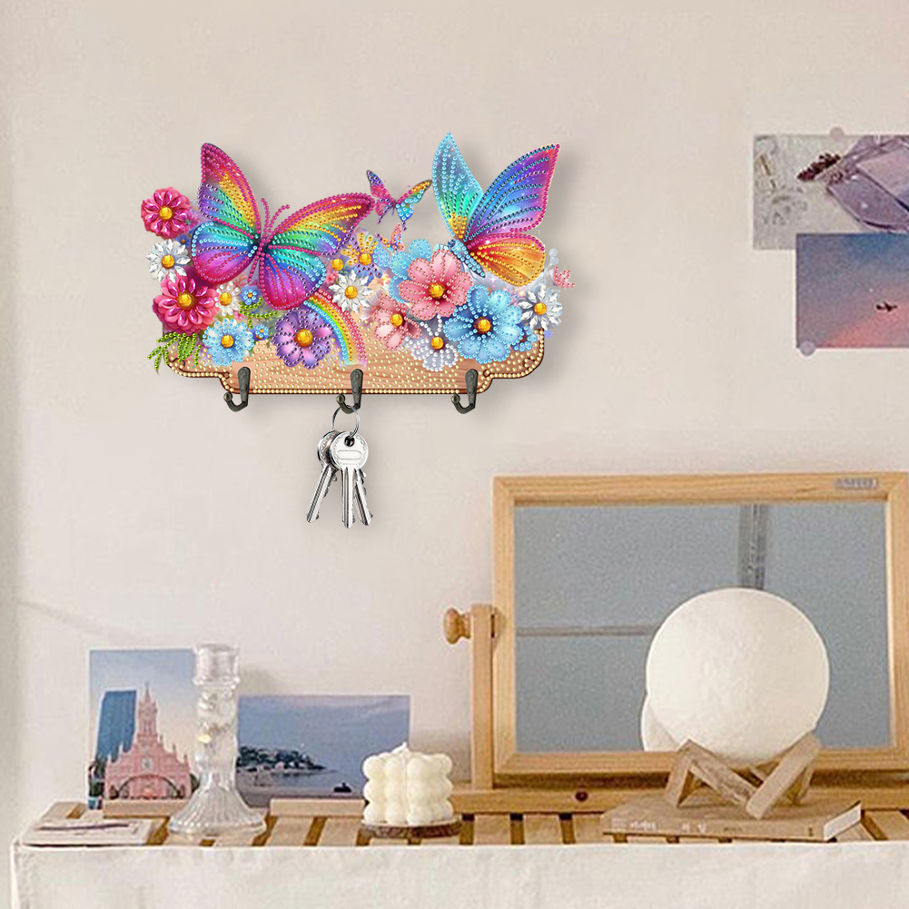 DIY Flower Butterfly Wooden Diamond Painting Hanging Hooks for Beginners Adults(28*18cm)