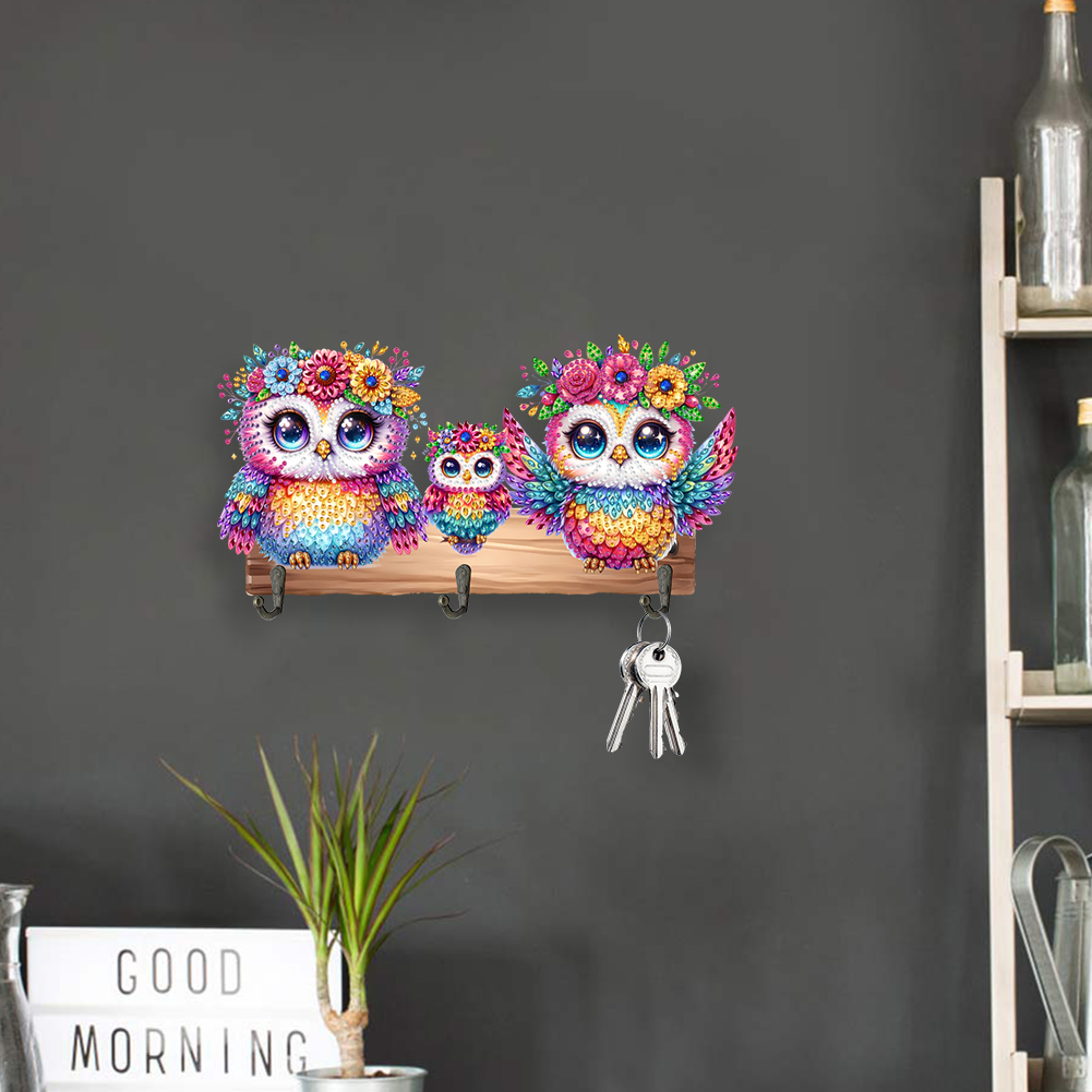 DIY Owls Wooden Diamond Painting Hanging Hooks for Beginners Adults(29*15cm)