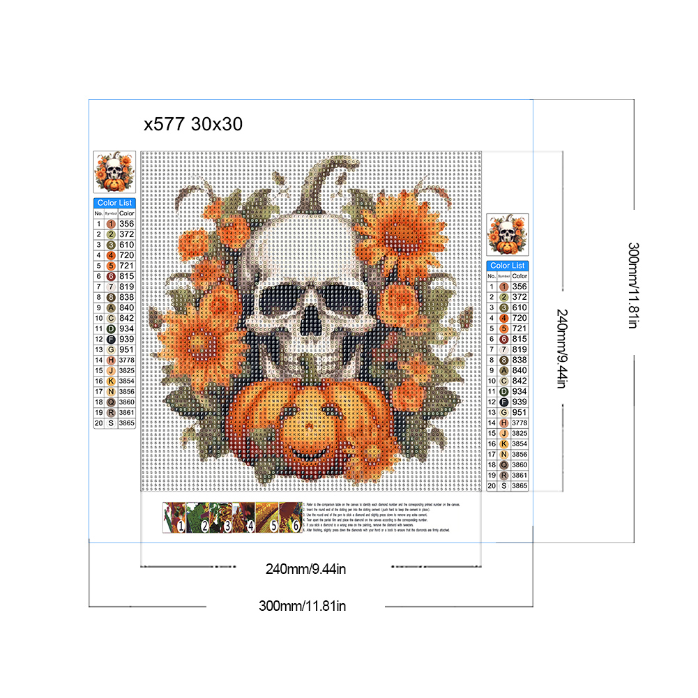 Diamond Painting - Full Round Drill - Pumpkin Skull(Canvas|30*30cm)