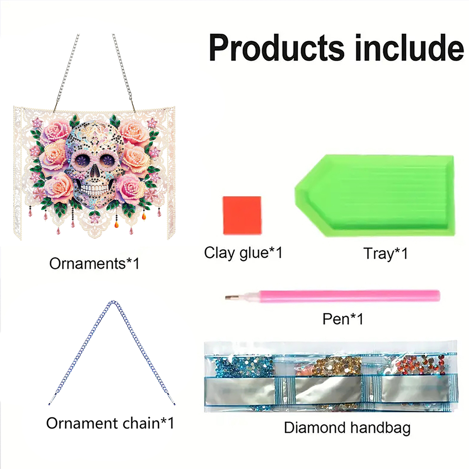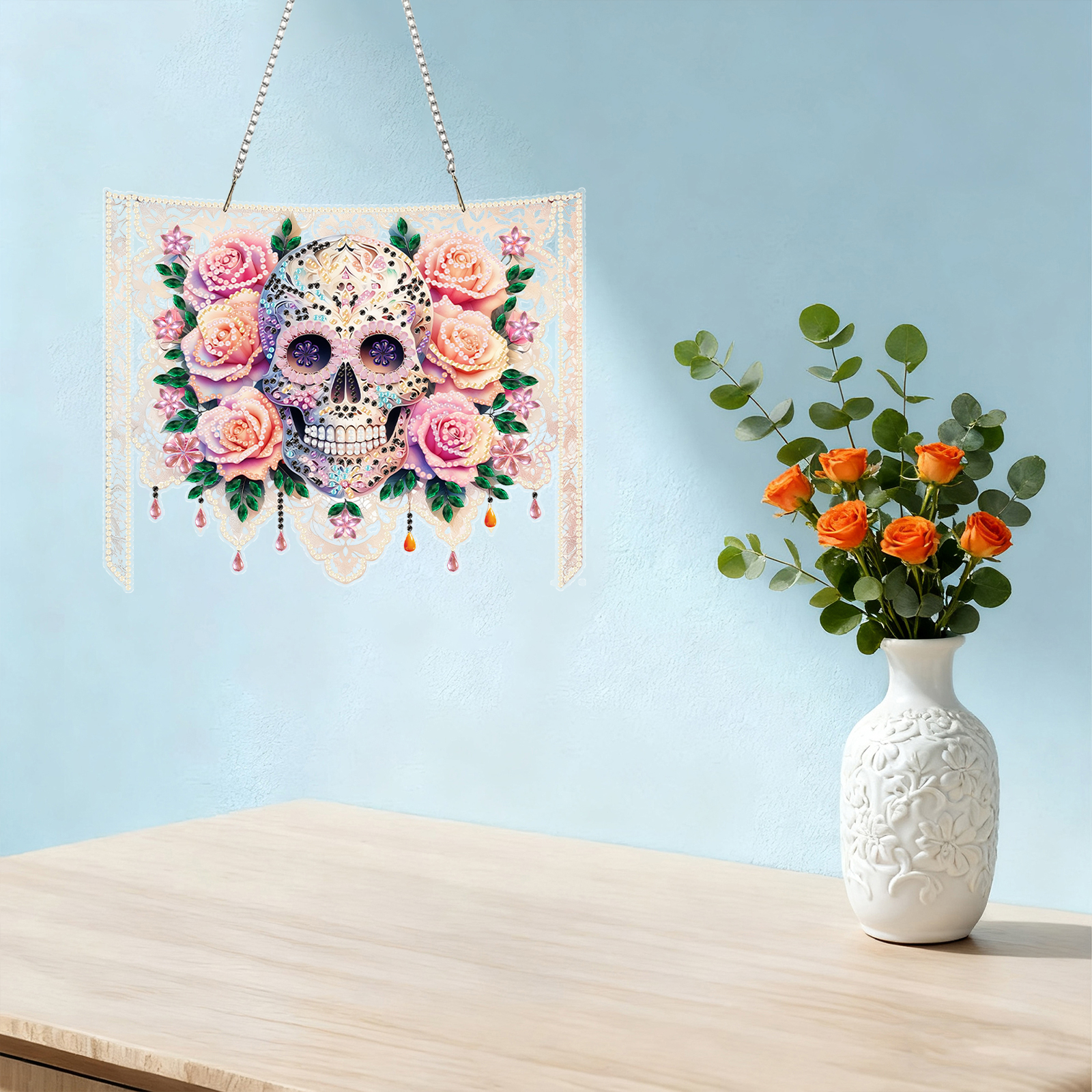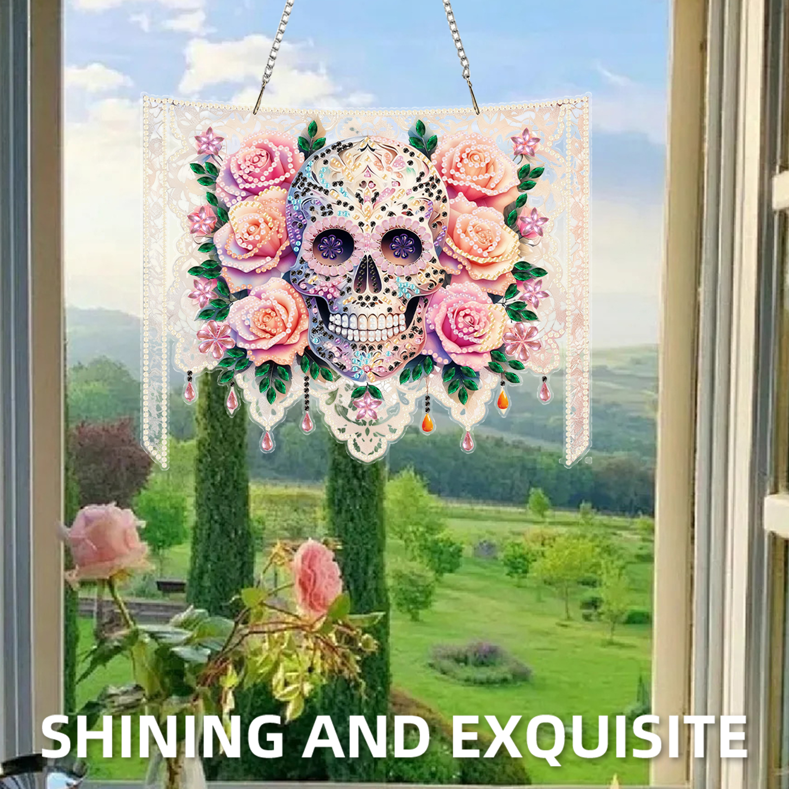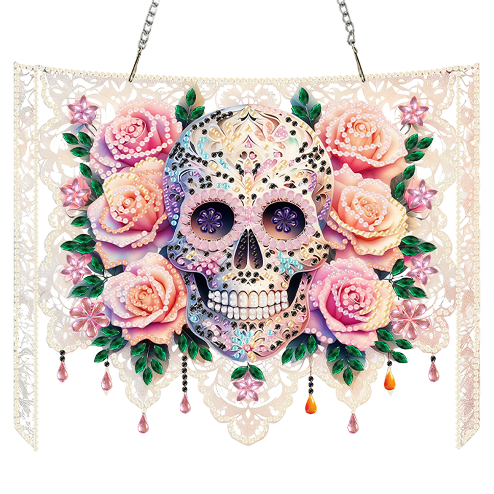 Skulls Flower 2D Flat DIY Acrylic Diamond Painting Kit Window Hanging Wall Decor
