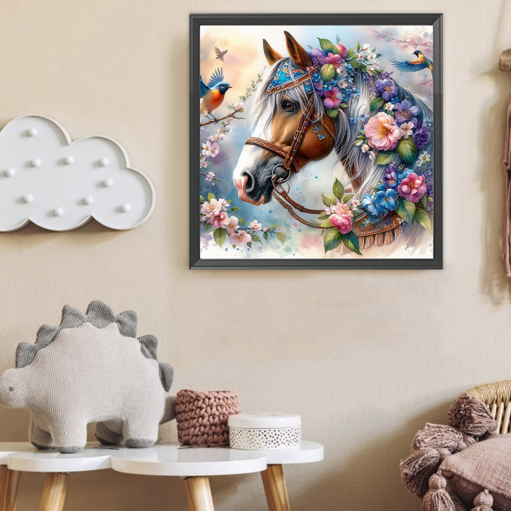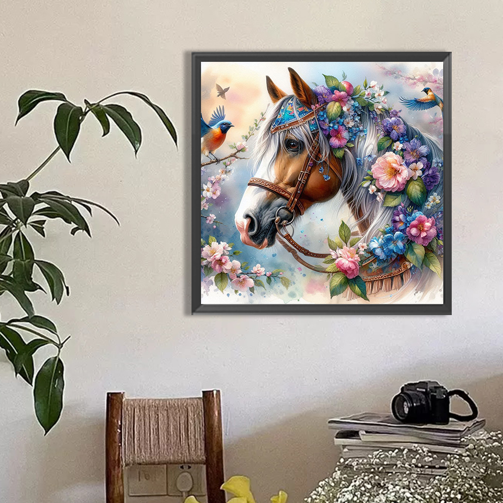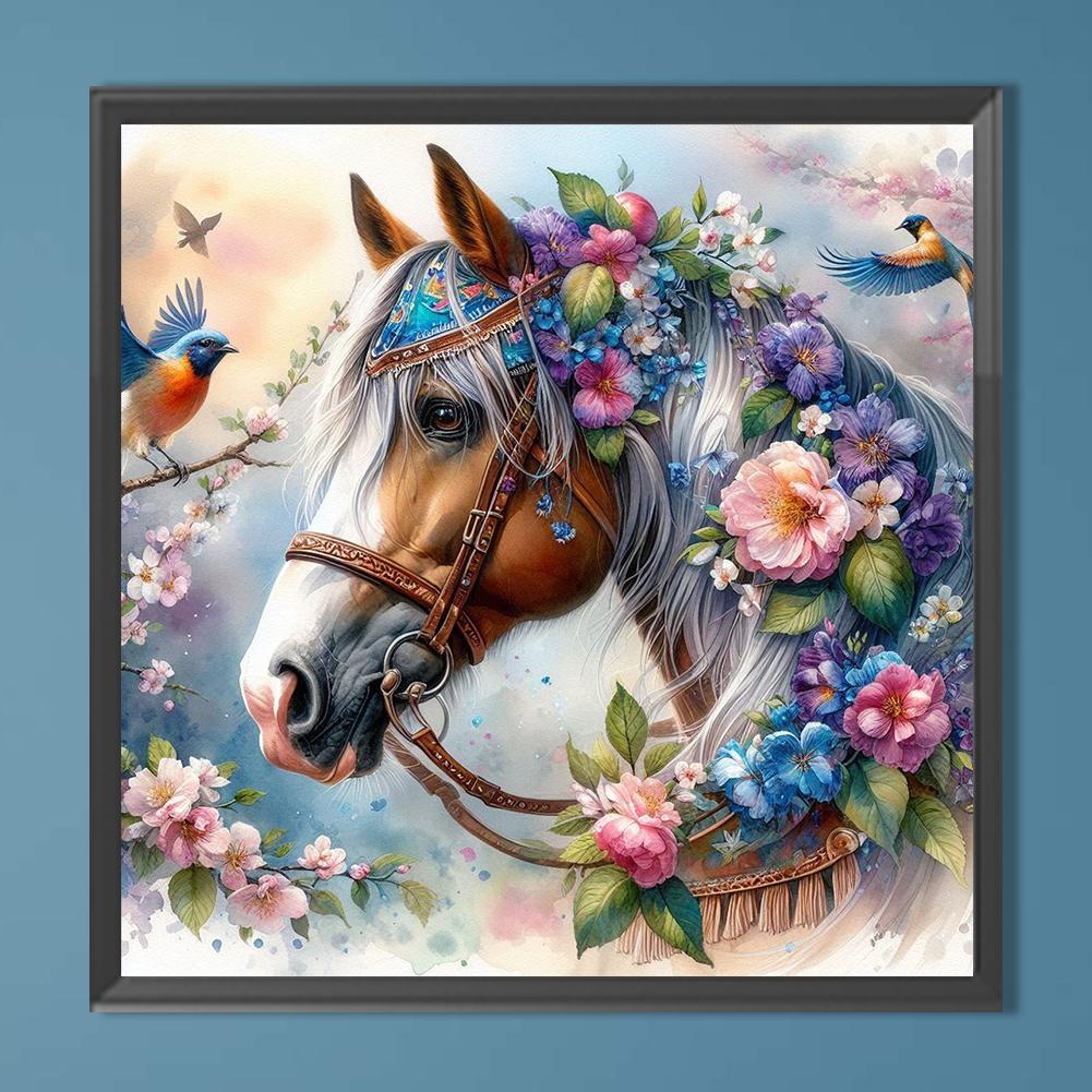 Diamond Painting - Full Round Drill - Flower Horse(Canvas|40*40cm)
