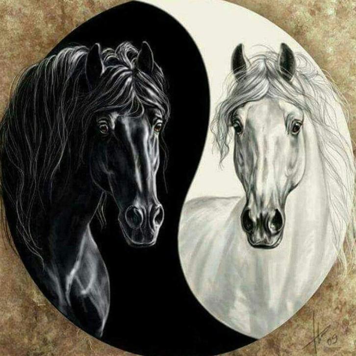 Diamond Painting - Full Round Drill - Yin Yang Horse(30*30cm)