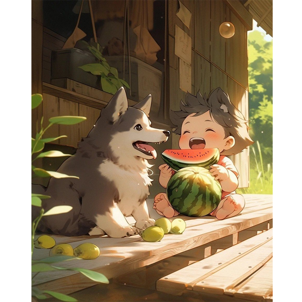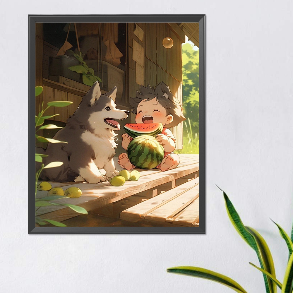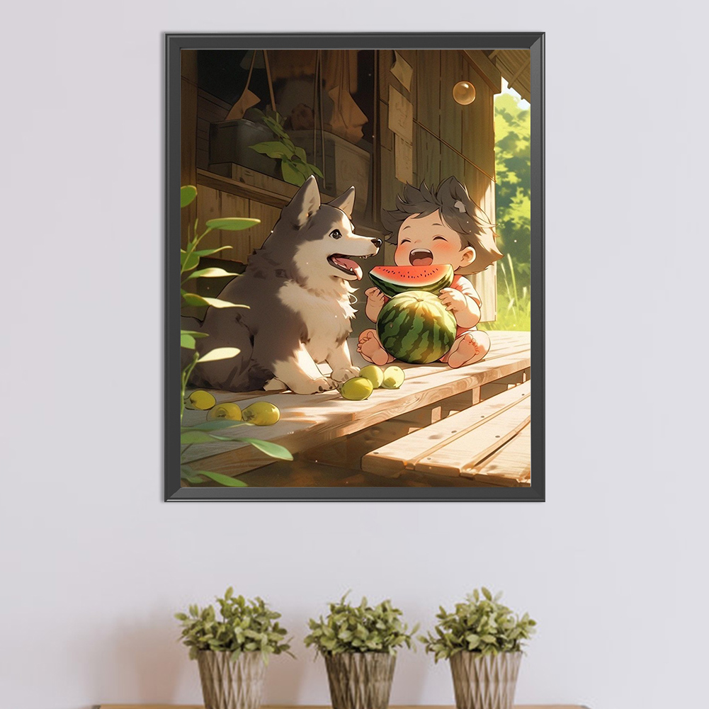 Diamond Painting - Full Round Drill - Child Eating Watermelon(Canvas|40*50cm)