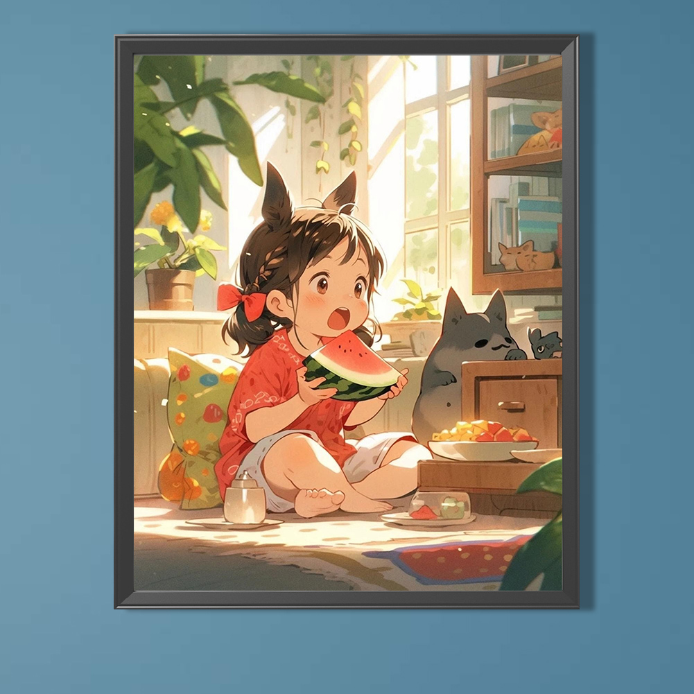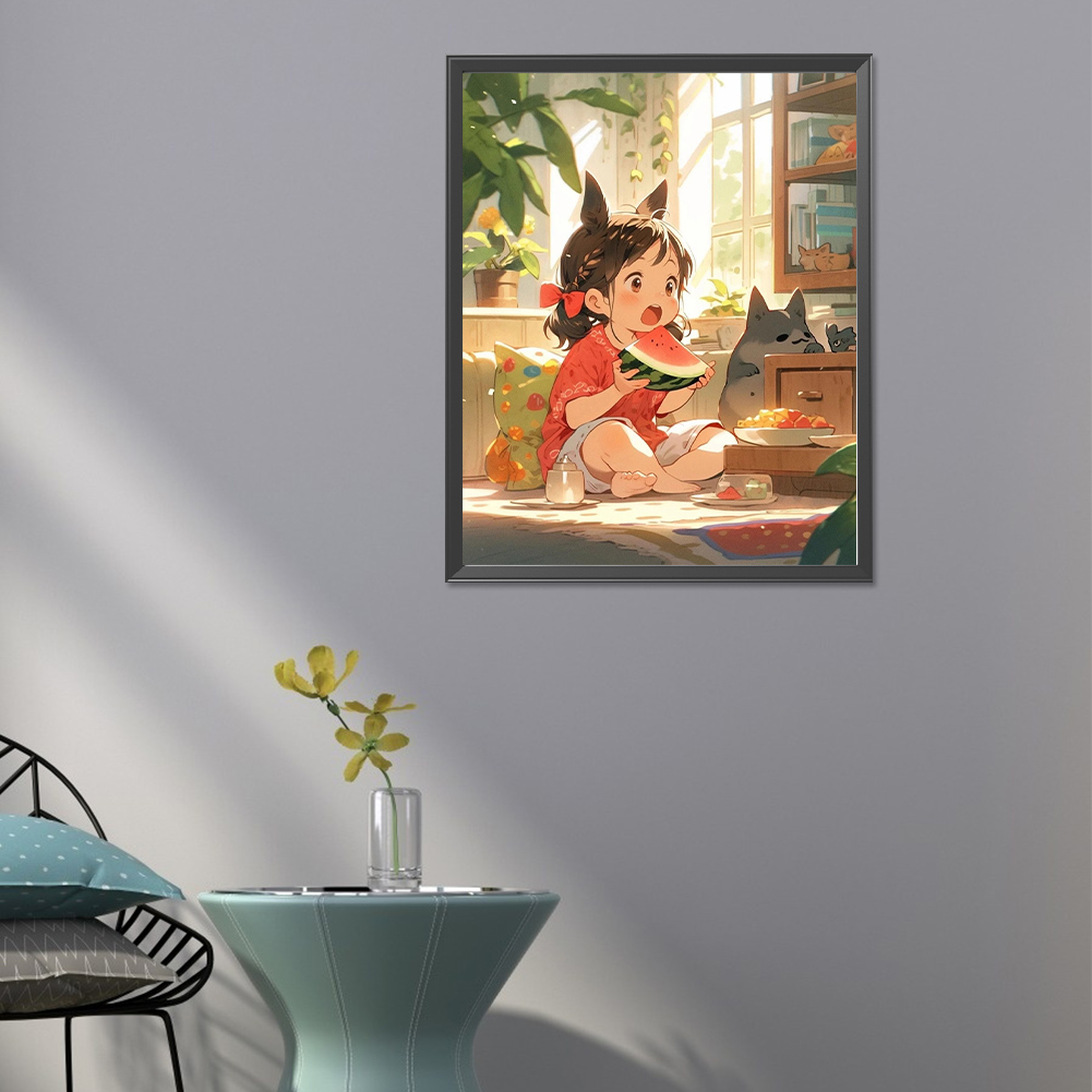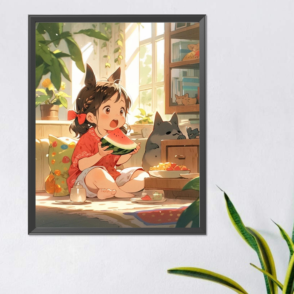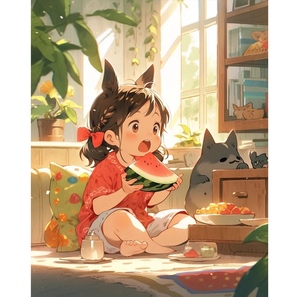 Diamond Painting - Full Round Drill - Child Eating Watermelon(Canvas|40*50cm)