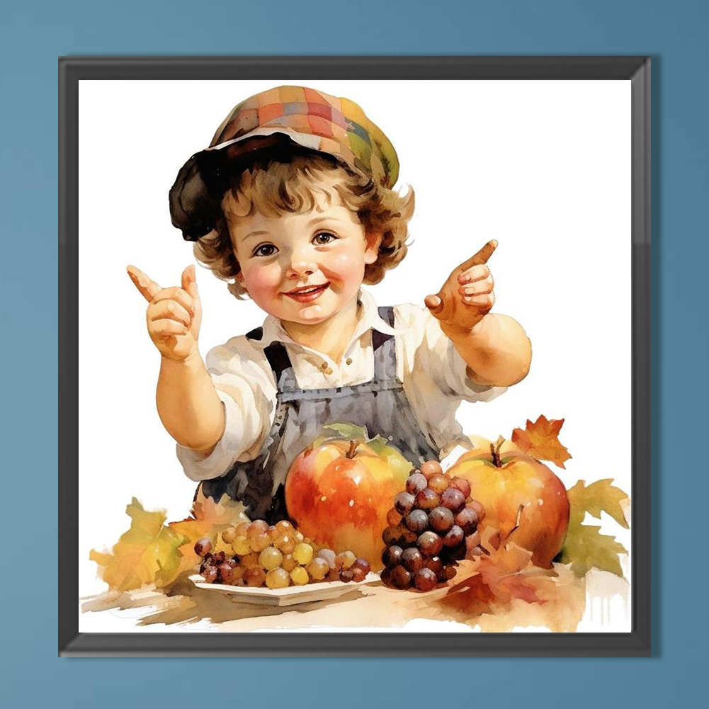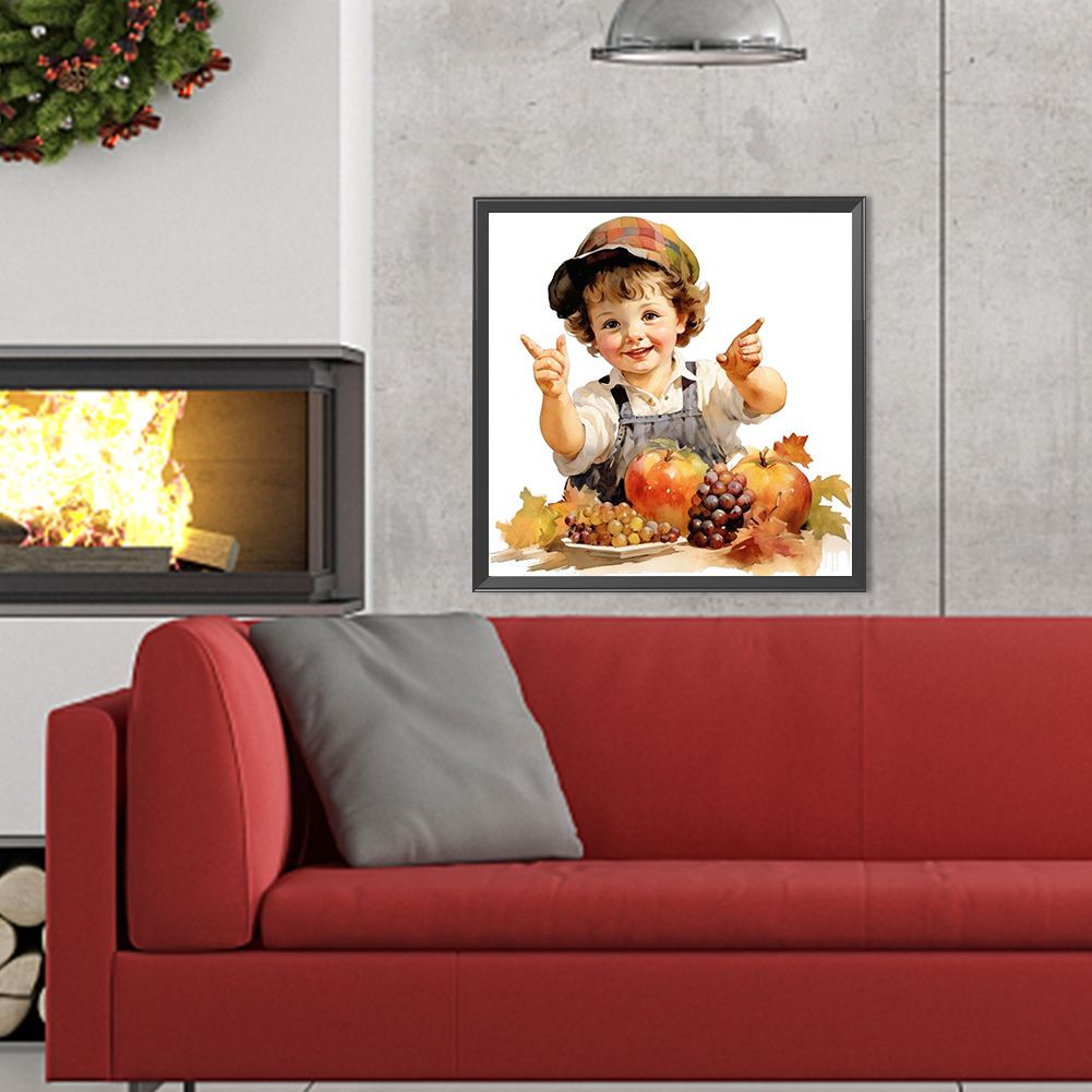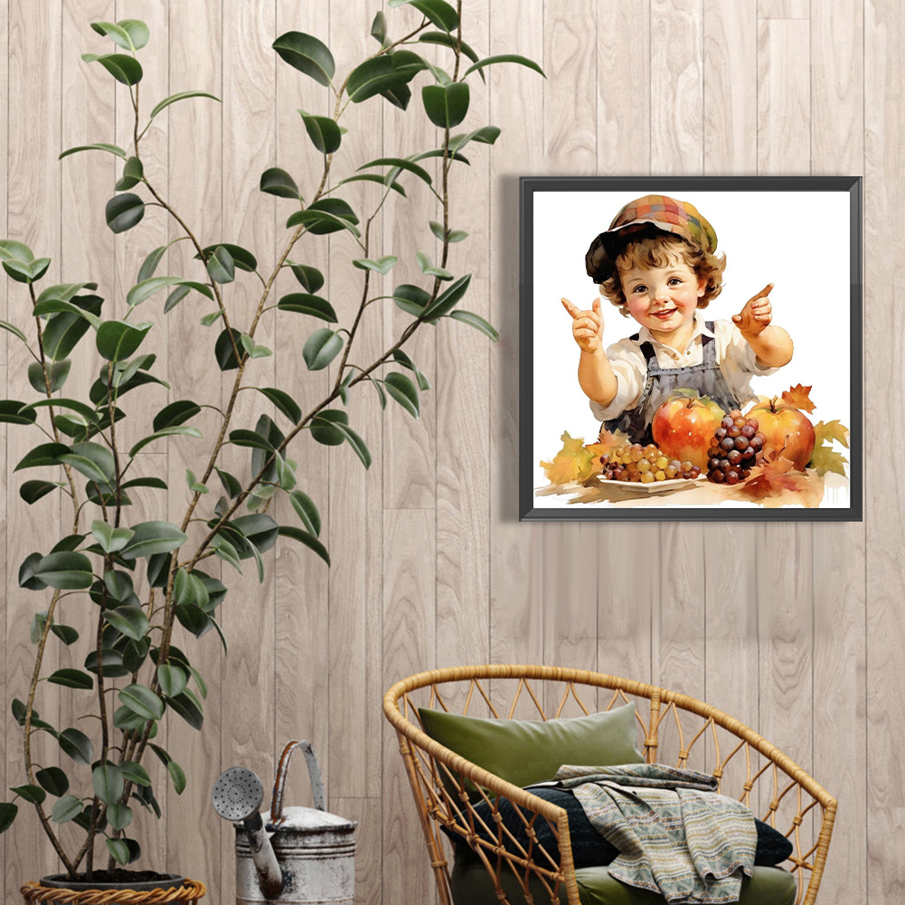 Diamond Painting - Full Round Drill - Harvest Farm Kid(Canvas|40*40cm)