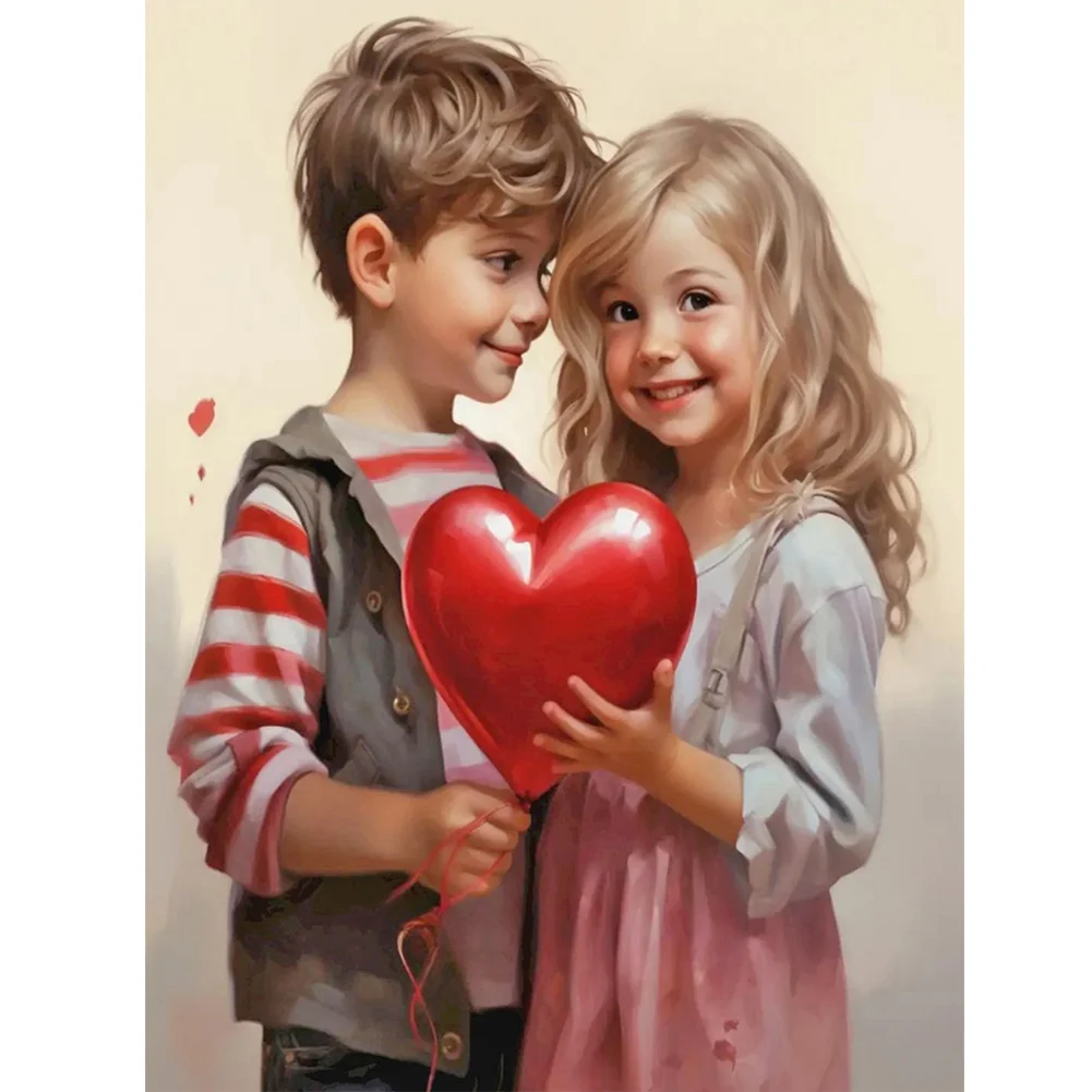Diamond Painting - Full Round Drill - Kid Sweet Couple(Canvas|30*40cm)