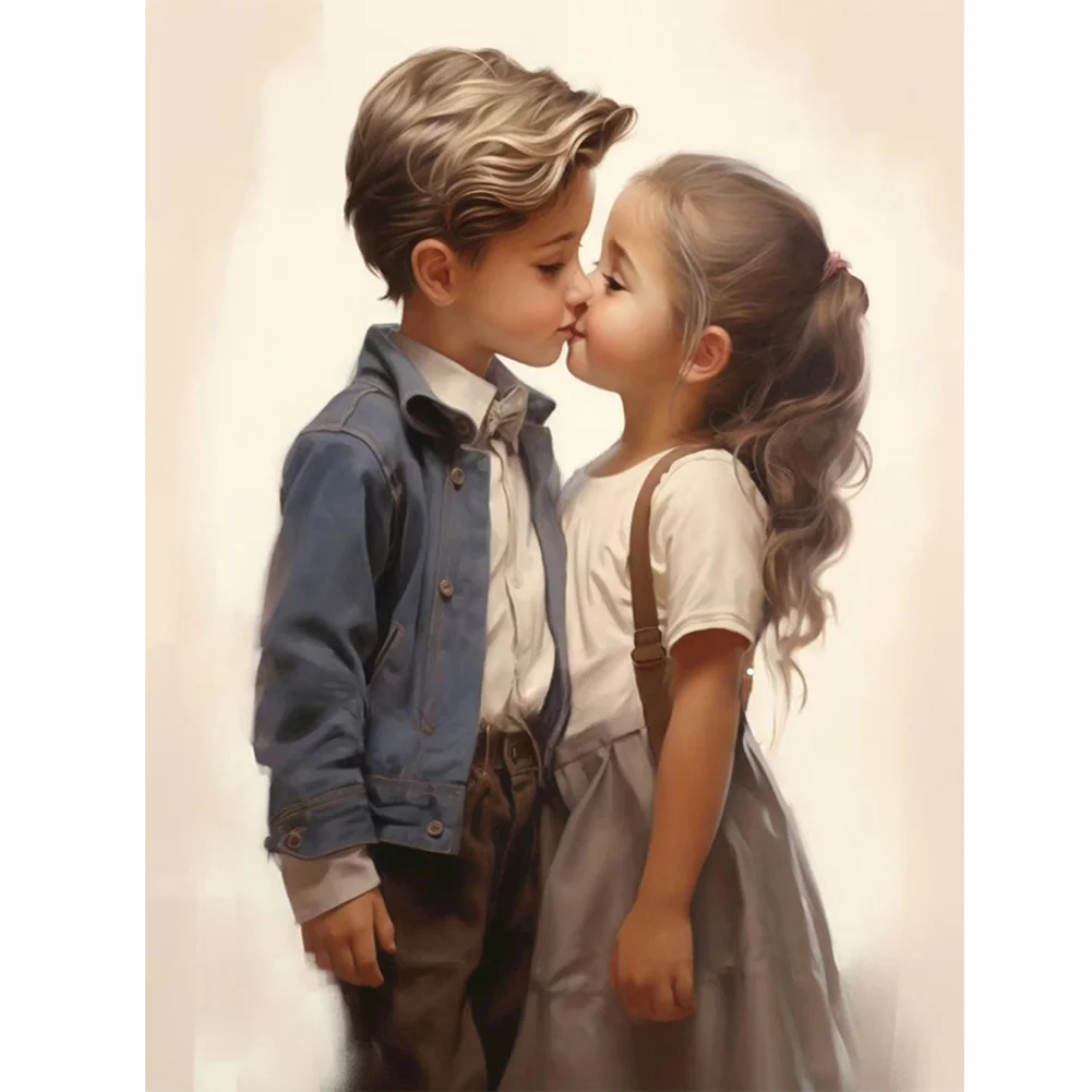 Diamond Painting - Full Round Drill - Kid Sweet Couple(Canvas|30*40cm)