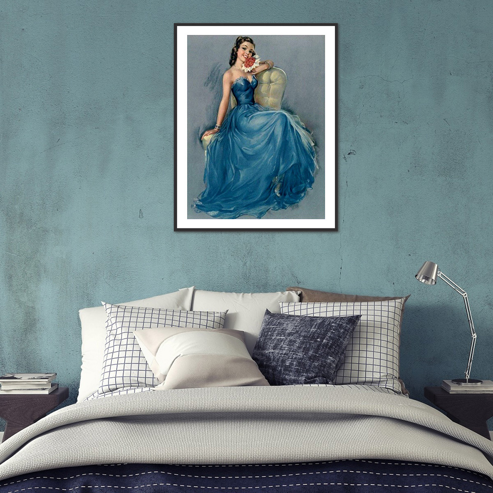 Full Round Diamond Painting 30*40cm - Woman In Blue Dress