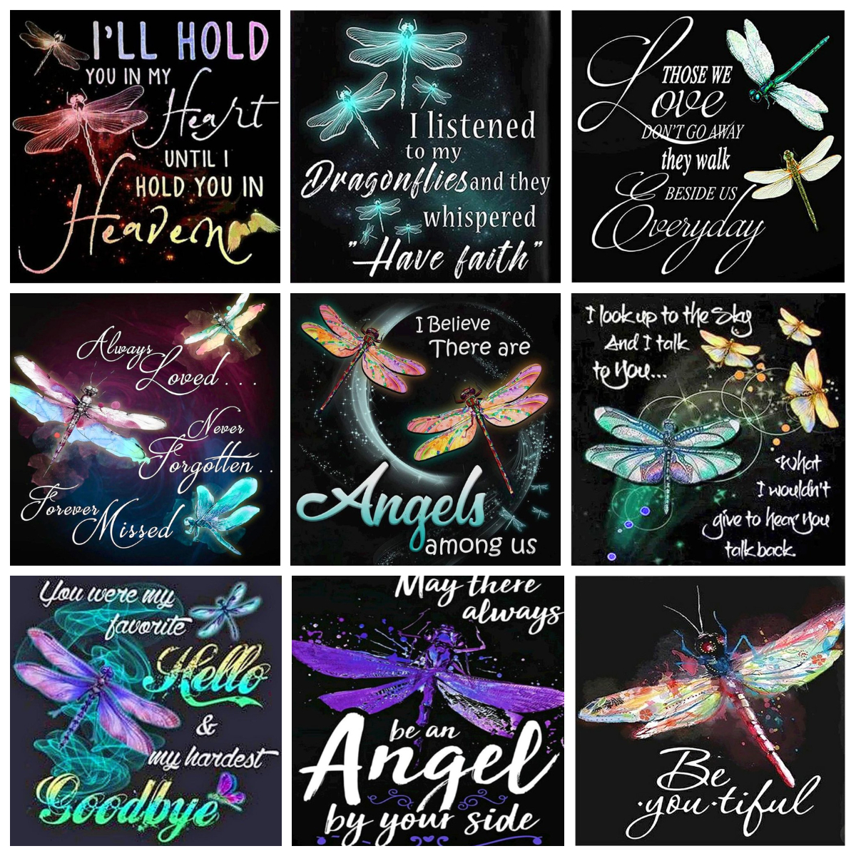 Diamond Painting - Full Round/Square Drill - Dragonfly Saying(30*30 - 50*50cm)