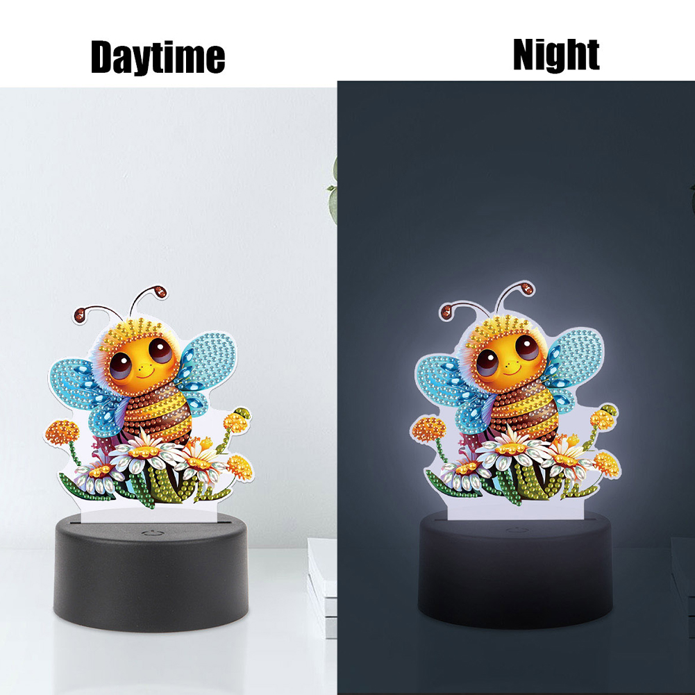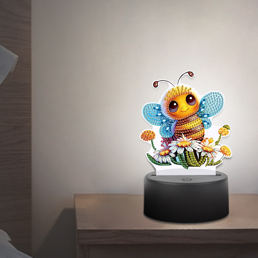 5D DIY Acrylic Bee Double Sided Diamond Painting LED Night Light for Adults