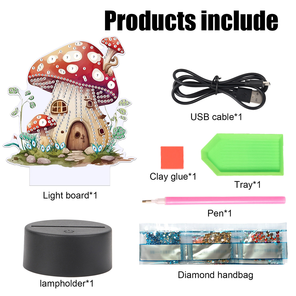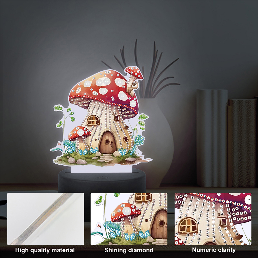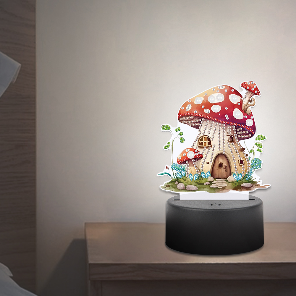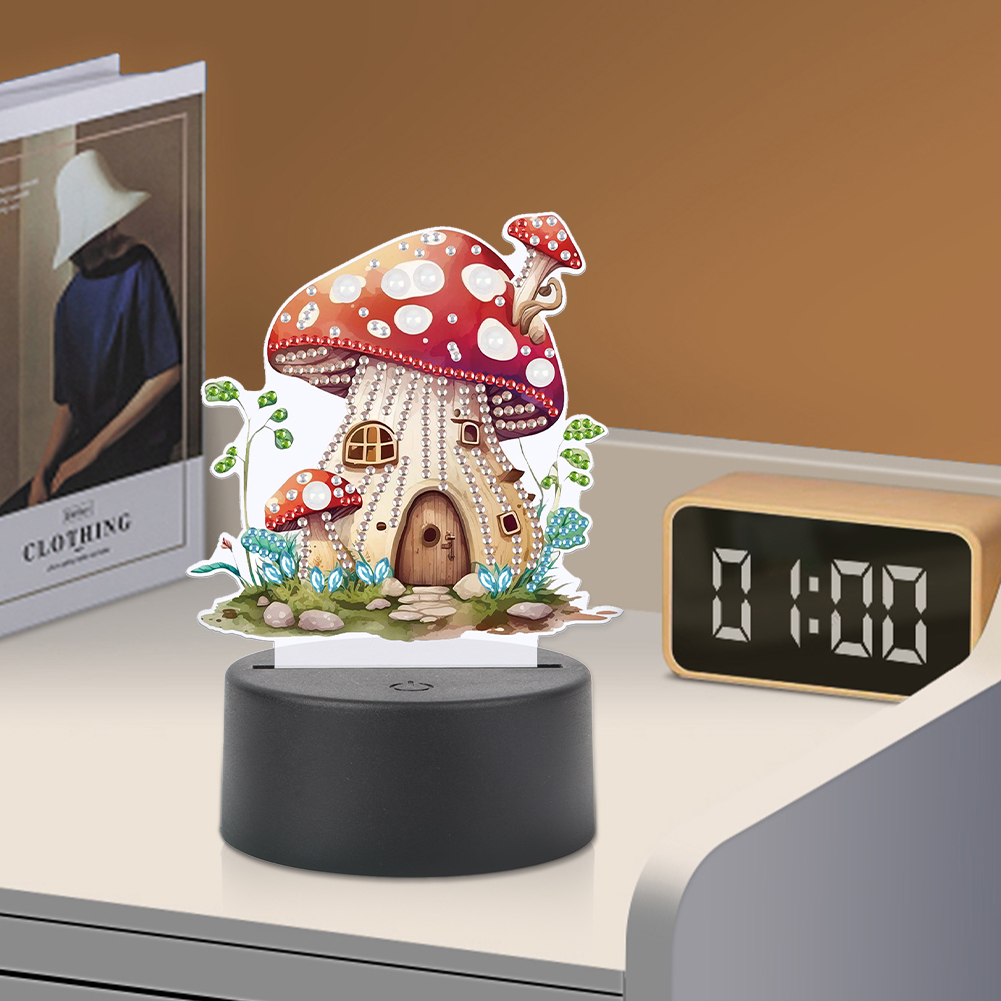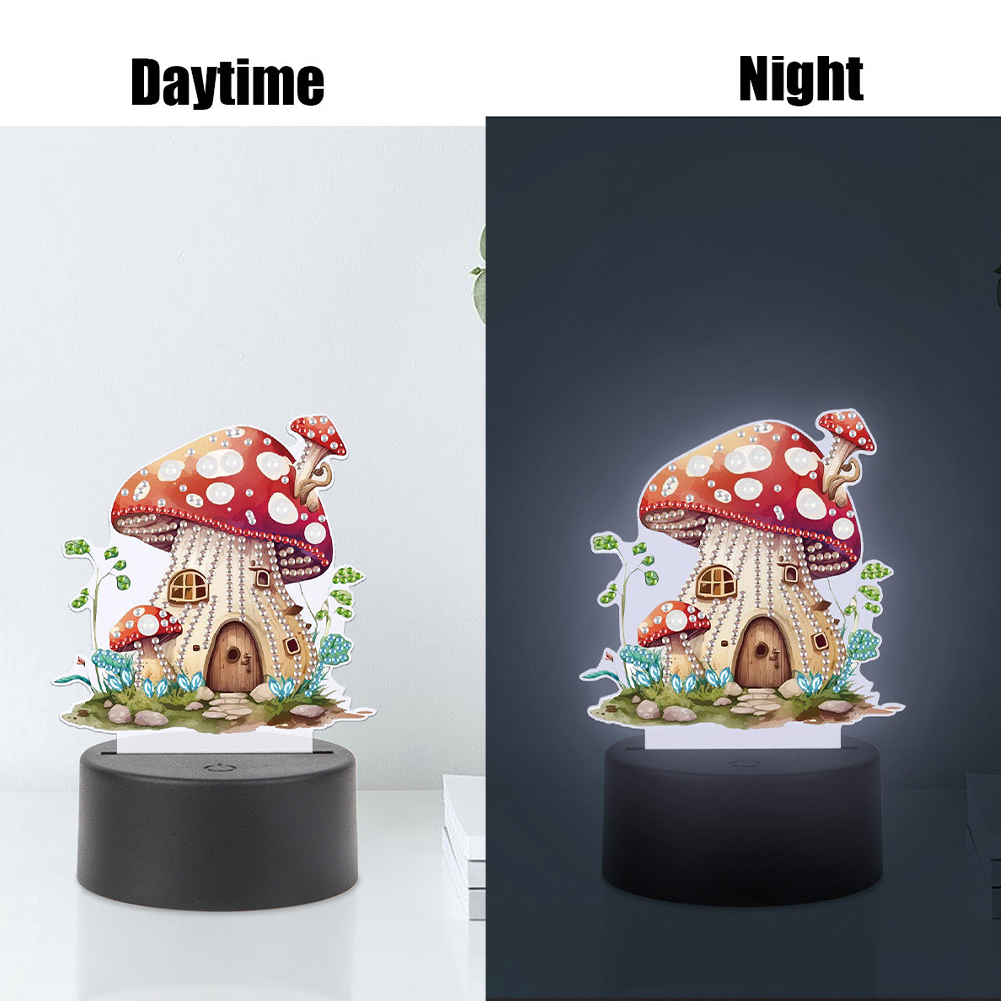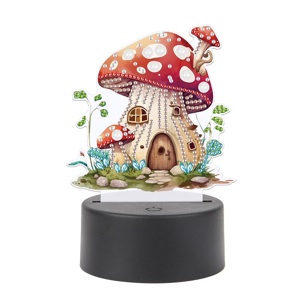 5D DIY Acrylic Mushroom House Double Sided Diamond Painting LED Night Light for Adults