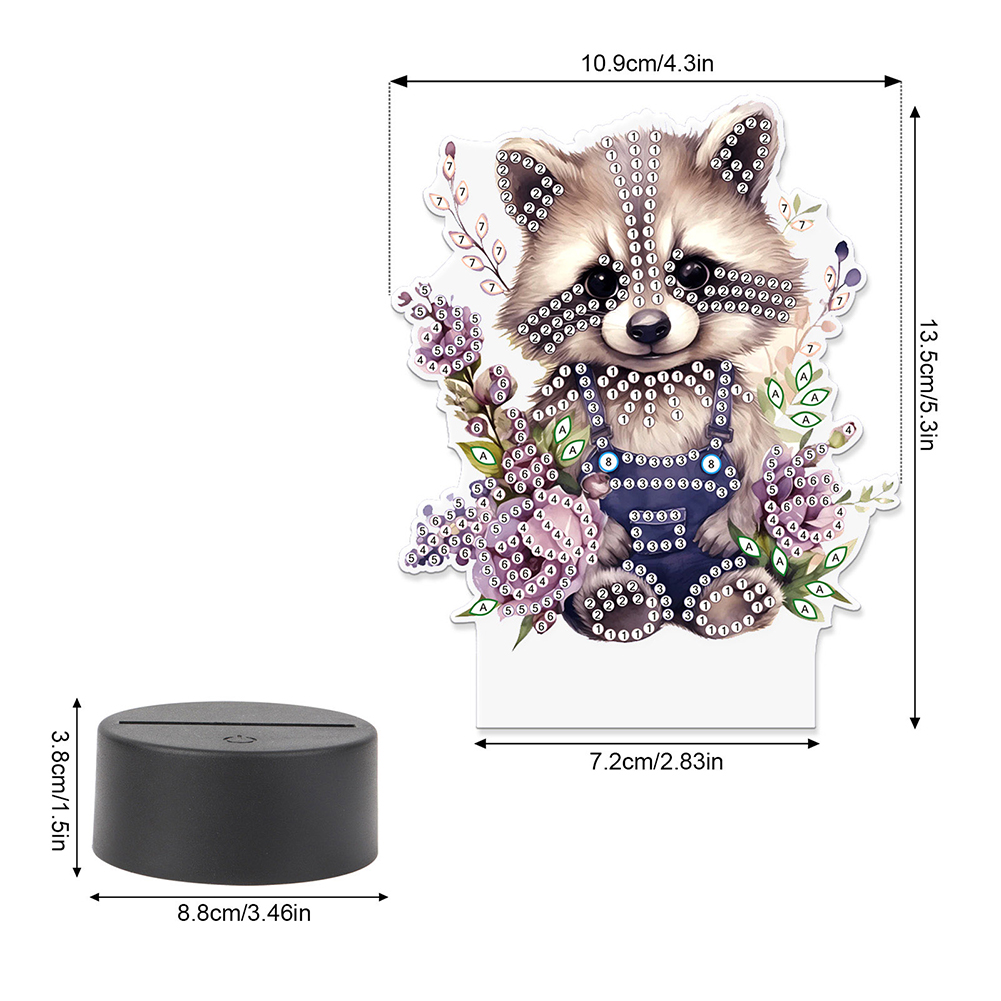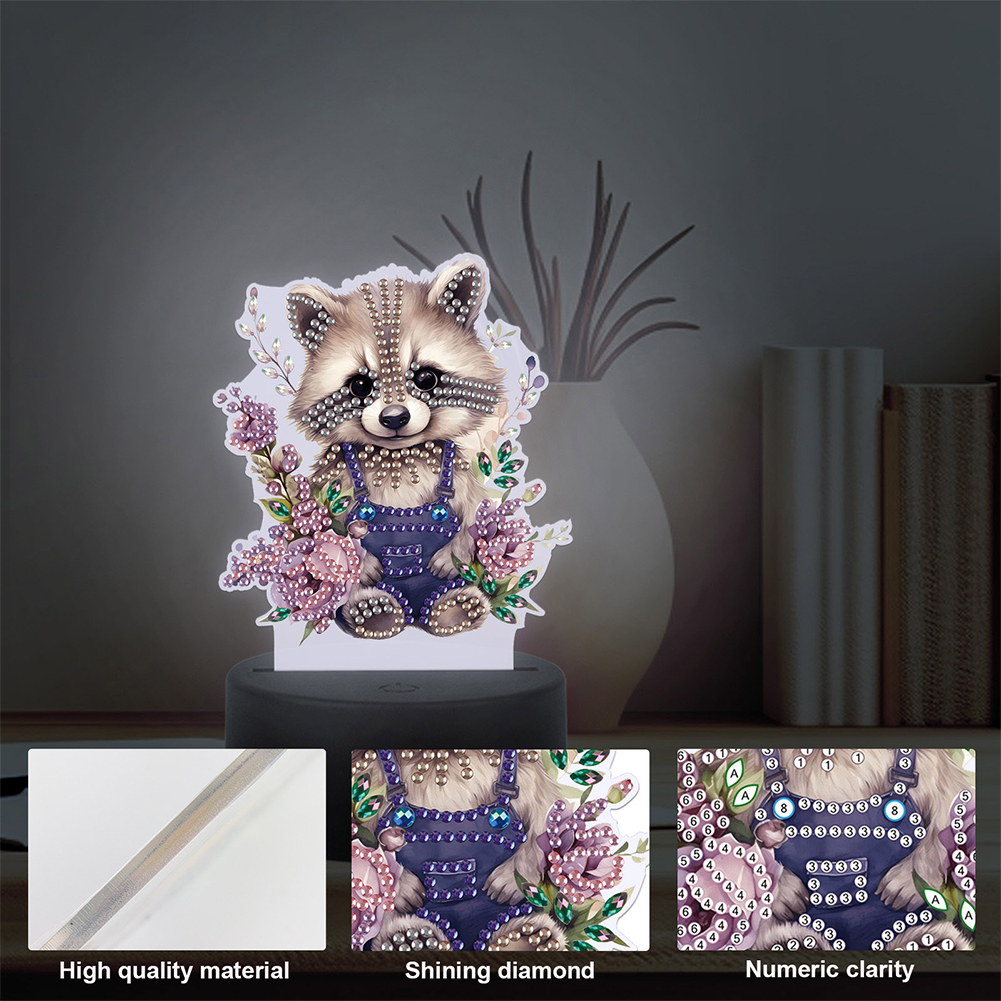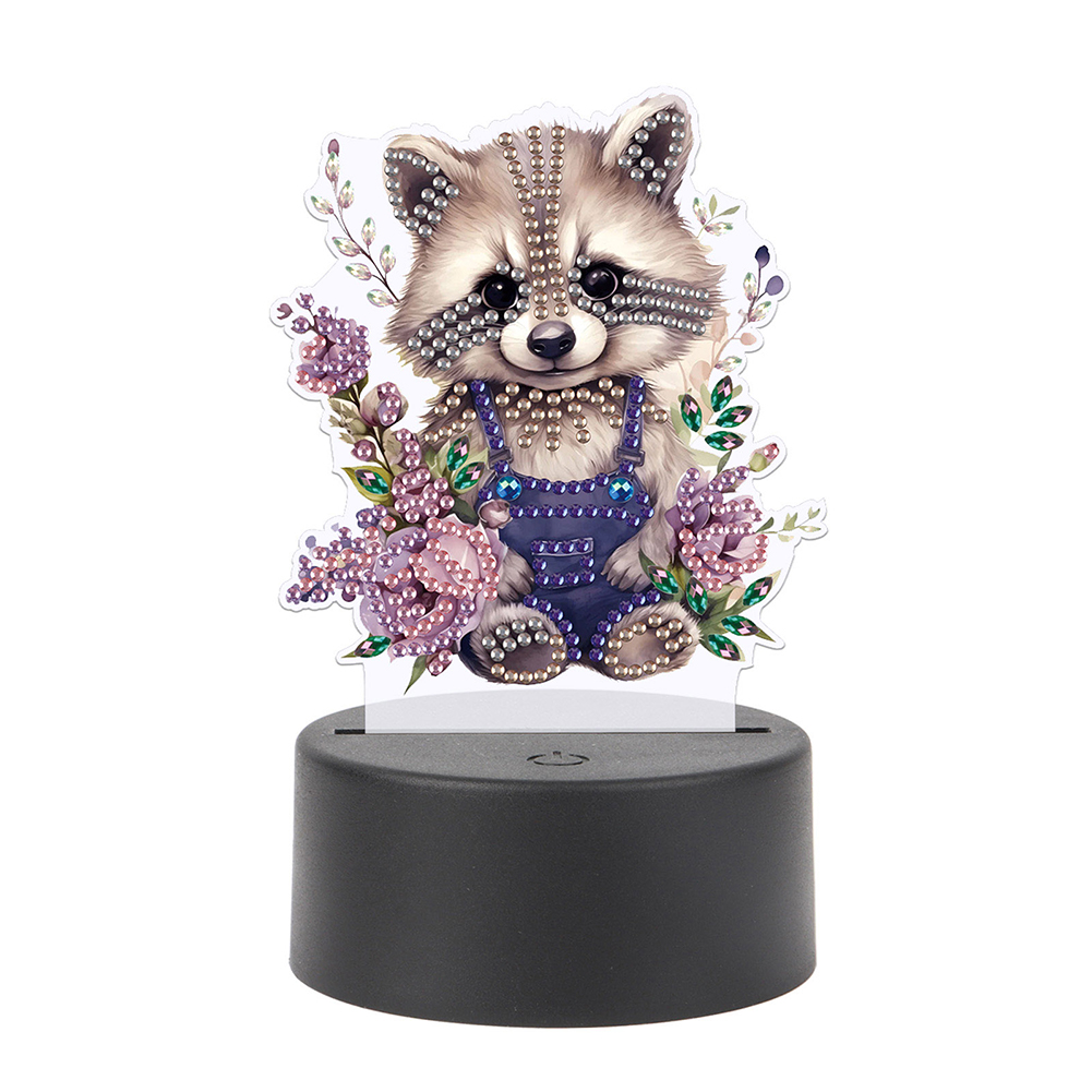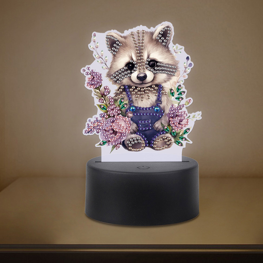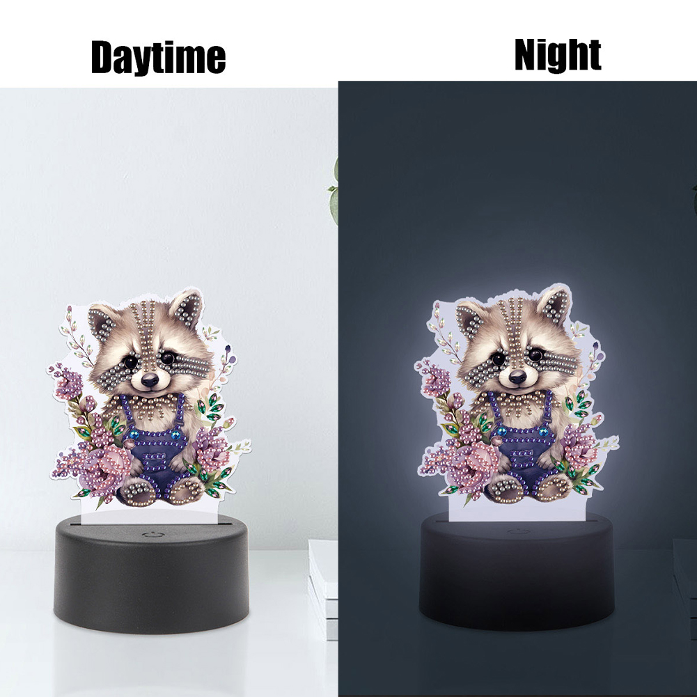 5D DIY Acrylic Raccoon Double Sided Diamond Painting LED Night Light for Adults