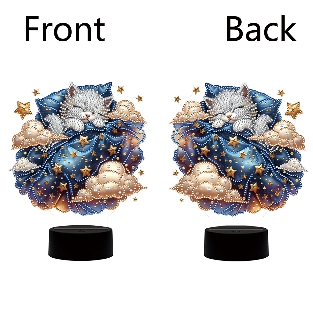 5D DIY Cat Double Sided Diamond Painting Acrylic Night Light for Art Crafts